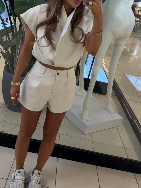 EMO skórzana kamizelka wykonana jest z wysokiej jakości eko-skóry, która ma delikatny połysk przez co prezentuje się niezwykle elegancko. Kamizelka ma krótszy krój z opadającą linią ramion, a dół kamizelki jest wykończony gumą co daje jej look bomberki i podkreśla sylwetkę. Kamizelka skórzana EMO zapinana jest na napy.