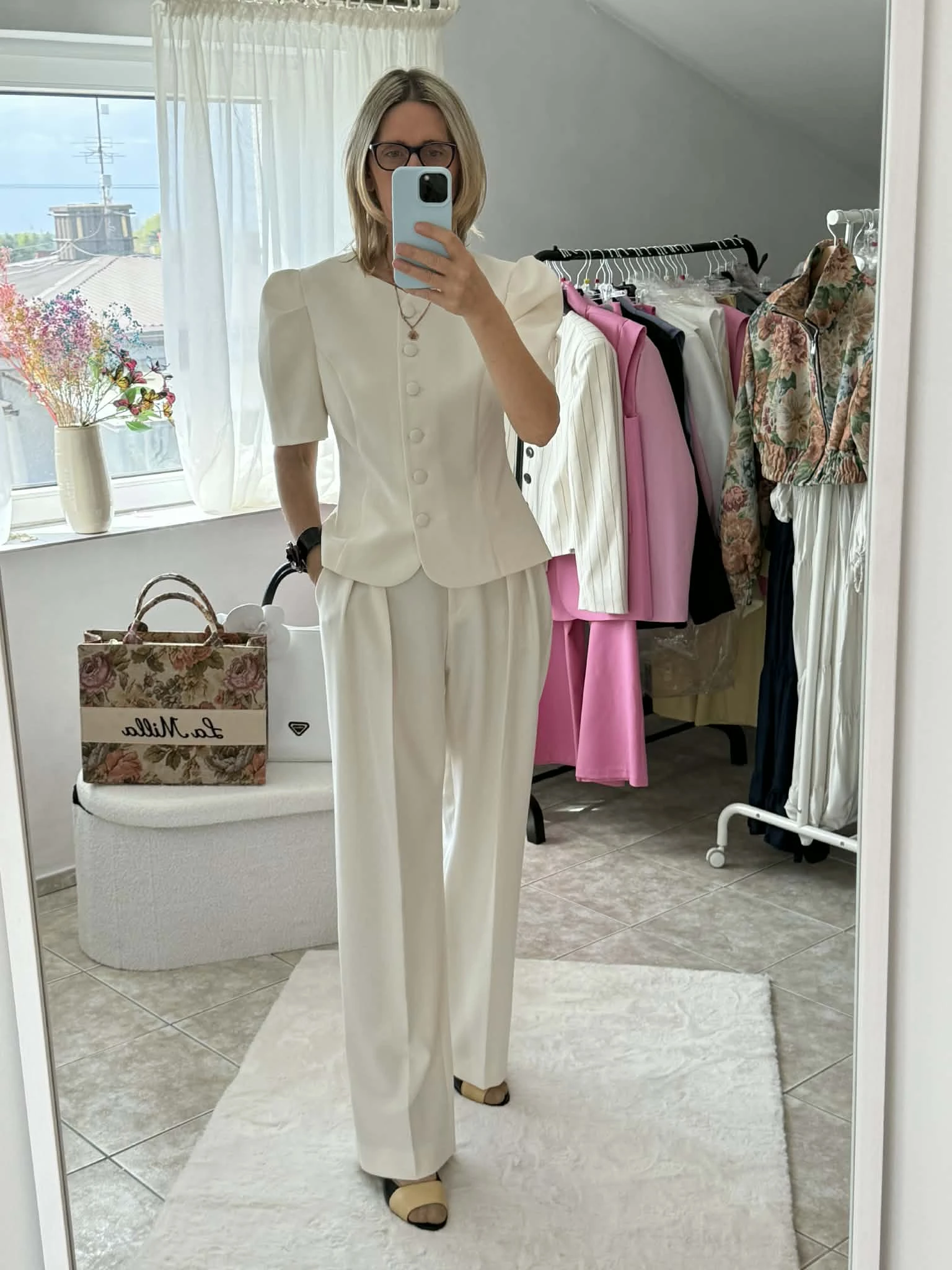 Eleganckie spodnie w kant EMO śmietankowe - eleganckie spodnie do marynarki Touch