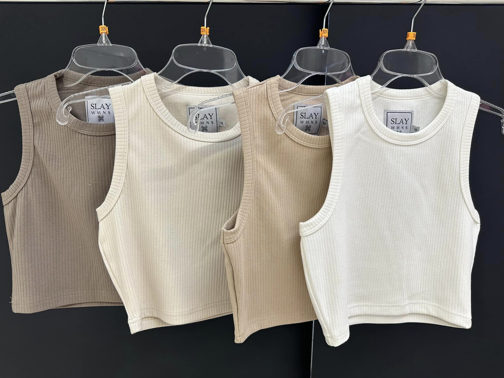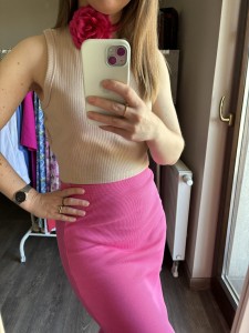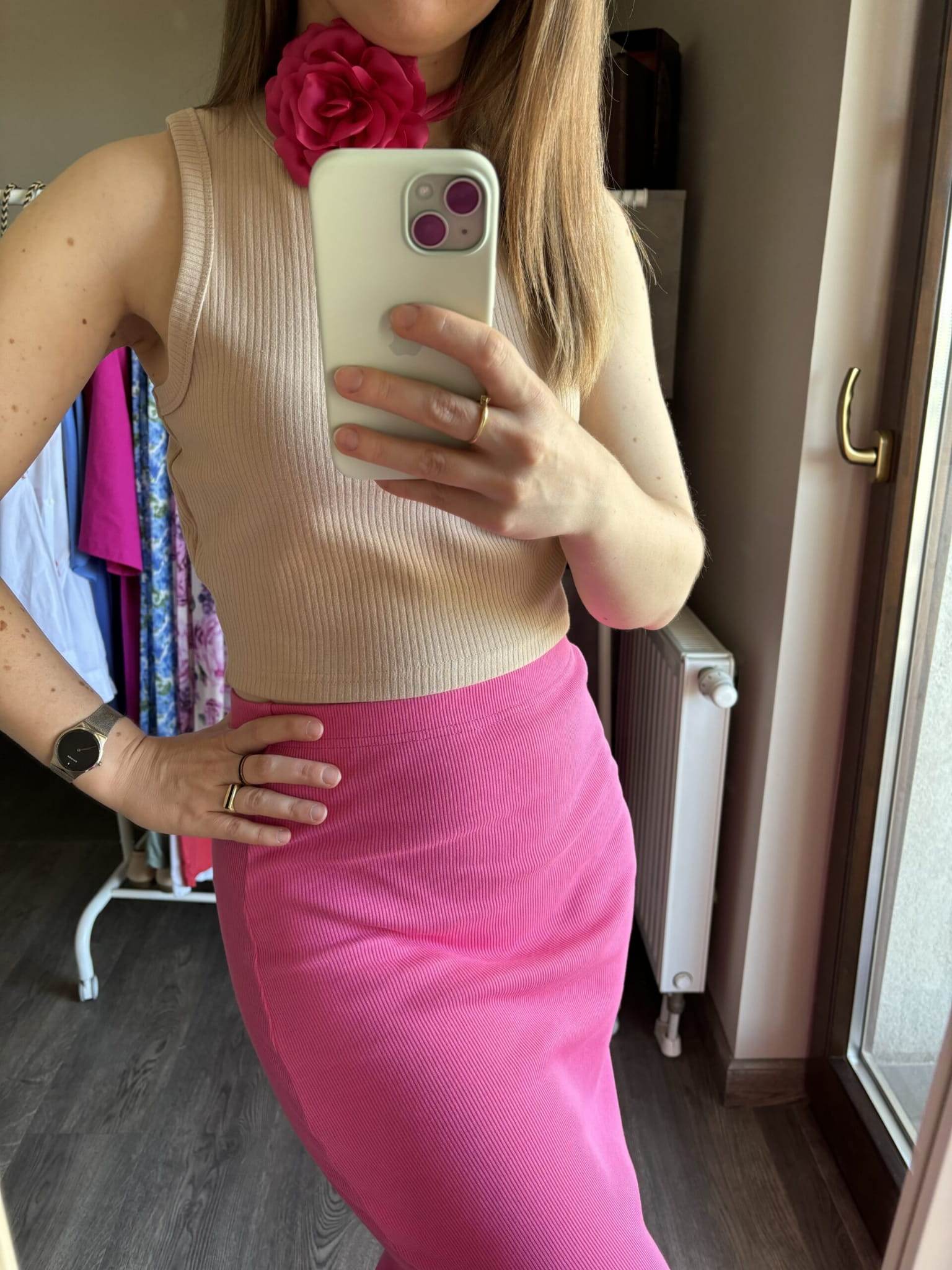 Krótki top prążkowany w kolorze beżowym to baza wielu stylizacji. Połączysz je z jeansami z wysokim stanem, spódnicami czy szortami.