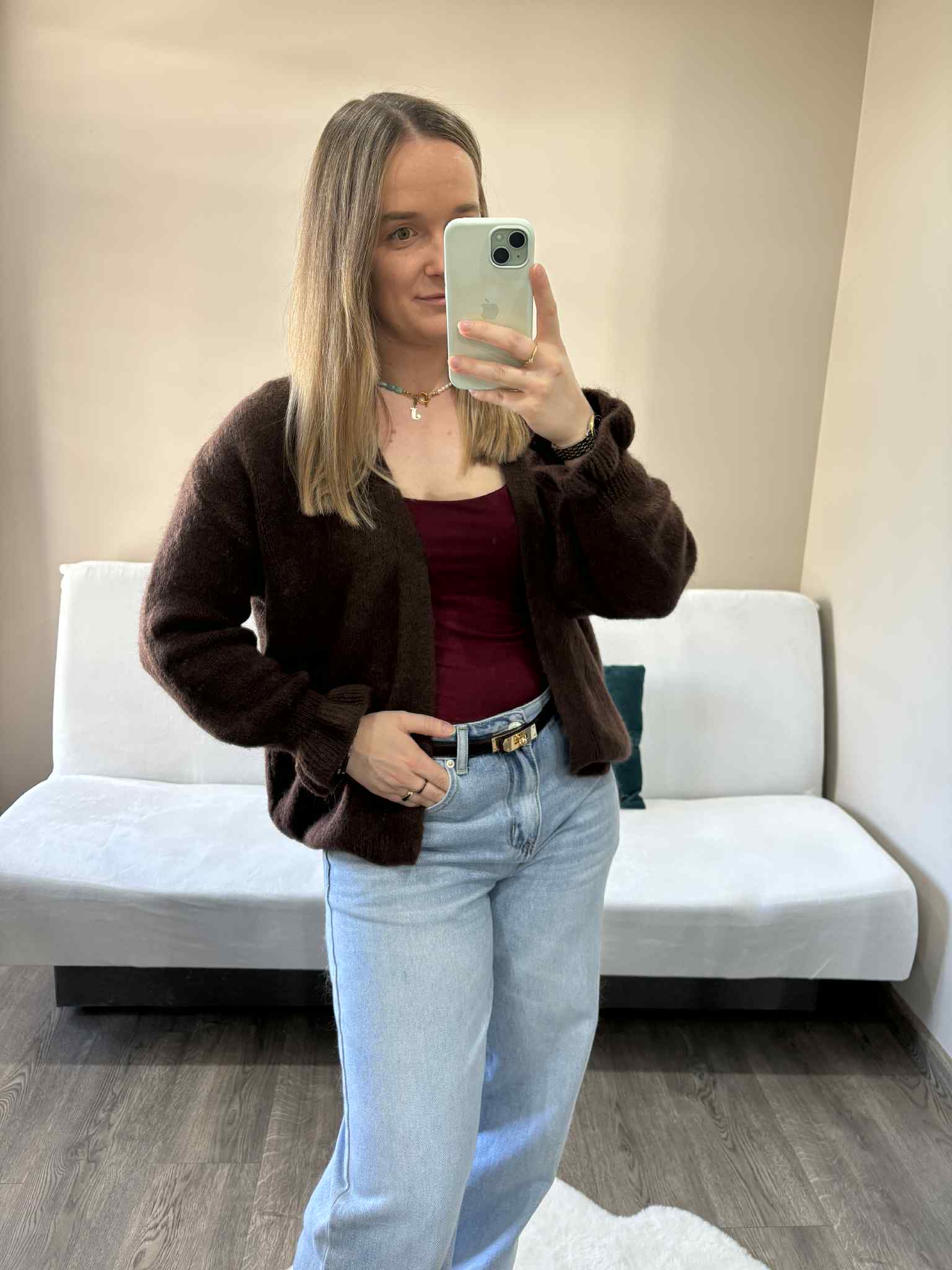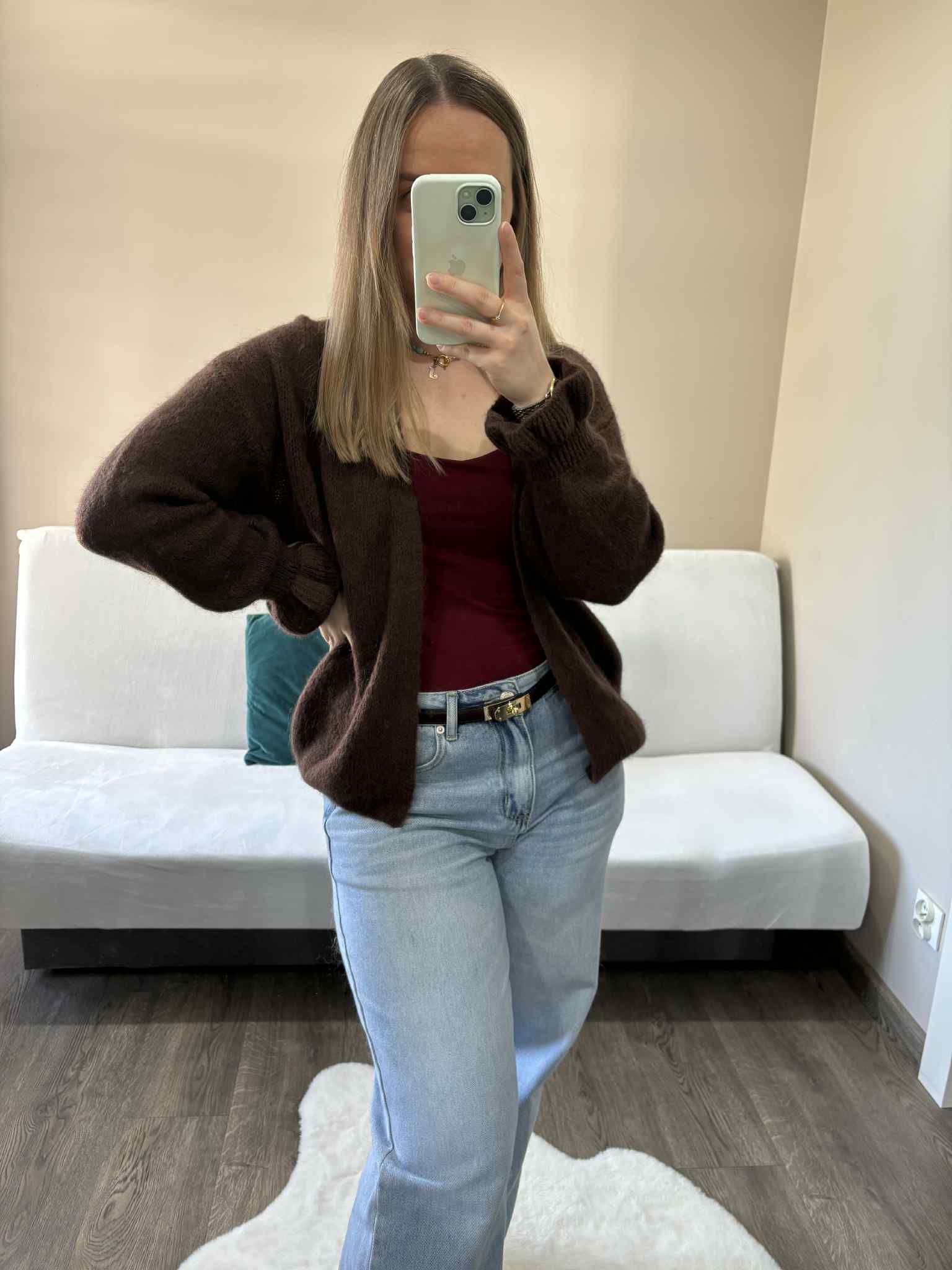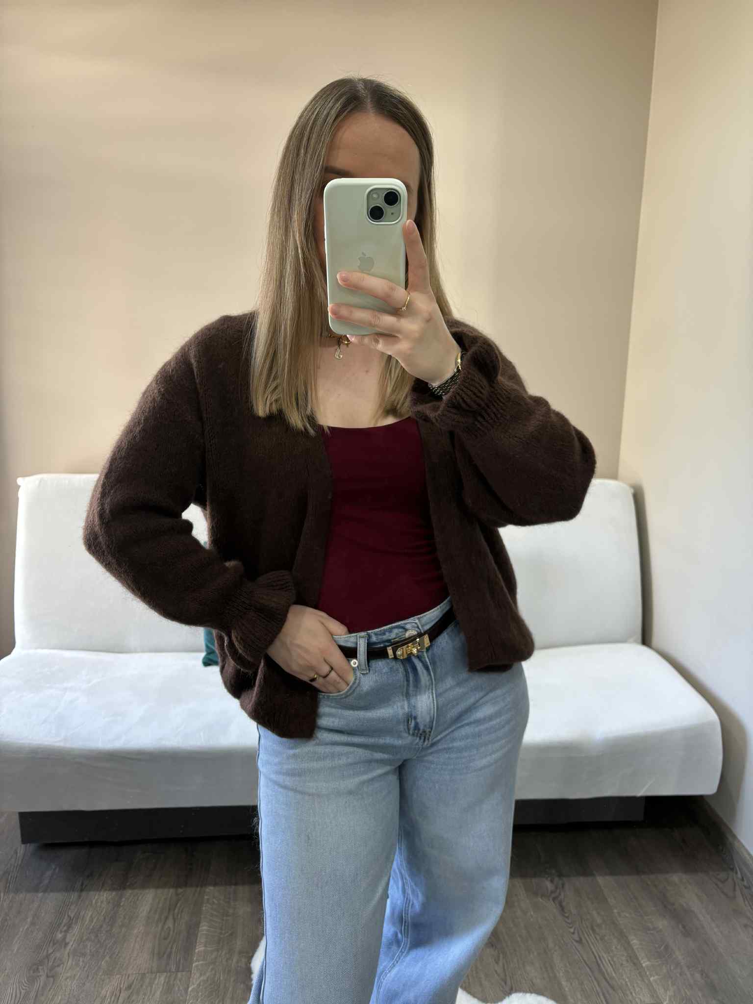 Kardigan baby alpaka czekoladowy – miękki, puszysty i elegancki kardigan z baby alpaki, idealny na jesień i zimę.