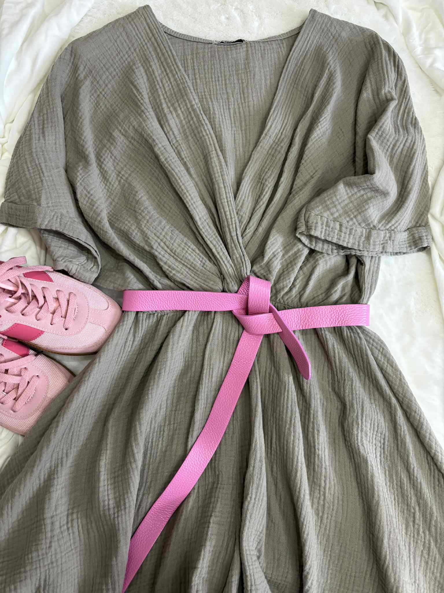 Kombinezon muślinowy fango to hit każdego sezonu, który musisz mieć w swojej szafie na lato. Muślinowy materiał jest przewiewny i świetnie sprawdza się na lato. Kopertowy dekolt pozwala na karmienie piersią. Kombinezon ma luźniejsze rękawki i gumkę w pasie. Sprawdzi się również na ciążowe brzuszki. Nogawki kombinezonu mają szerszy krój. Komplet w najmodniejszym kolorze tego roku świetnie sprawdzi się z klapkami, sandałkami lub obuwiem sportowym.