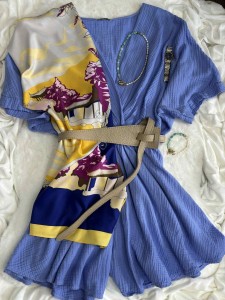 Kombinezon muślinowy niebieski to hit każdego sezonu, który musisz mieć w swojej szafie na lato. Muślinowy materiał jest przewiewny i świetnie sprawdza się na lato. Kopertowy dekolt pozwala na karmienie piersią. Kombinezon ma luźniejsze rękawki i gumkę w pasie. Sprawdzi się również na ciążowe brzuszki. Nogawki kombinezonu mają szerszy krój. Komplet w najmodniejszym kolorze tego roku świetnie sprawdzi się z klapkami, sandałkami lub obuwiem sportowym.