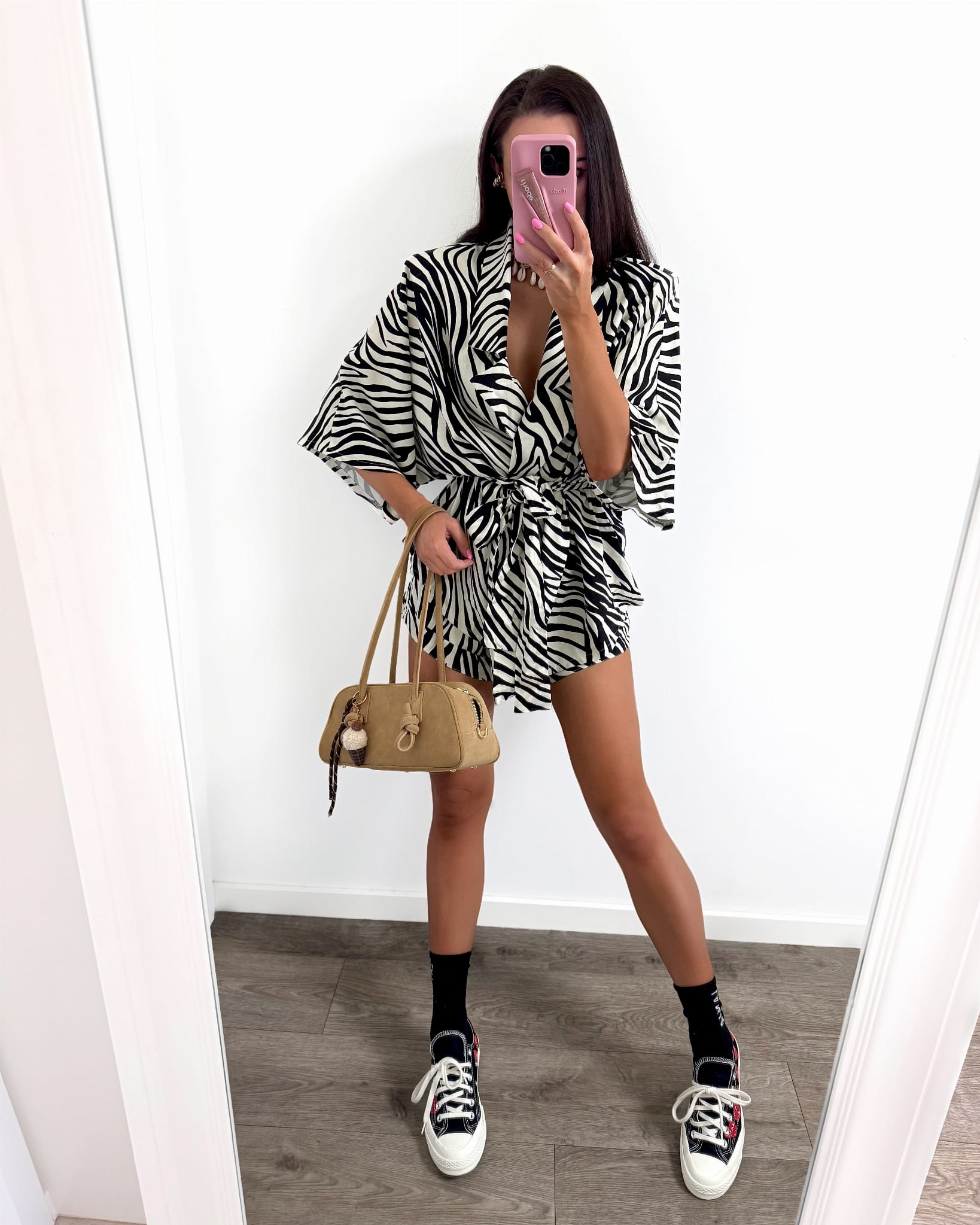 Komplet kimono i spodenki od La Milla to idealna letnia propozycja, która musi się znaleźć w Twojej szafie. Kimono i spodenki w motywie zebry zapewnią Ci komfort podczas letnich dni. Kimono w zestawie ma pasek co pozwala Ci na kilka możliwości stylizacji. Spodenki mają kieszenie i szeroką gumę w pasie. Kimono i spodenki możesz również nosić osobno lub łączyć z innymi propozycjami w motywie zebry. Kimono i spodenki zapewnią Ci niezliczoną ilość stylizacji.