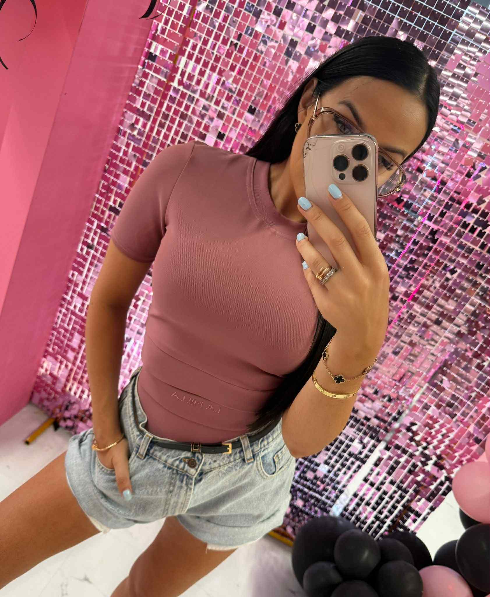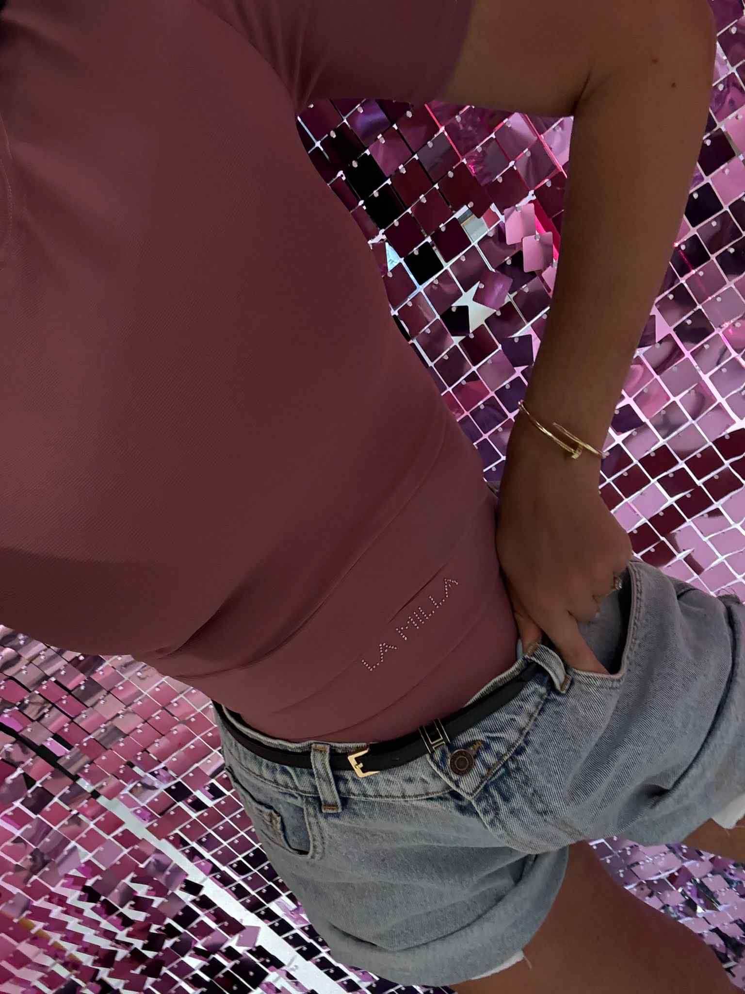 Komplet La Milla majtki figi i top z krótkim rękawem to idealny dwuczęściowy komplet na co dzień lub podczas aktywnych dni. Komplet La Milla składa się z dopasowanej krótkiej bluzki oraz majtek z wysokim stanem(figi), które pięknie podkreślają sylwetkę. Ozdobna lamówka z cekinowym napisem La Milla dodaje uroku. Przepiękny różowy odcień świetnie sprawdzi się do jesiennych stylizacji.