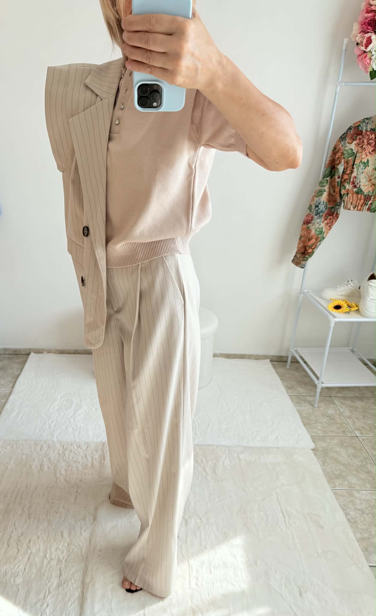 Elegancka kamizelka La Milla oversize beżowa w paski - kamizelka La Milla oversize - garnitur beżowy w paski La Milla