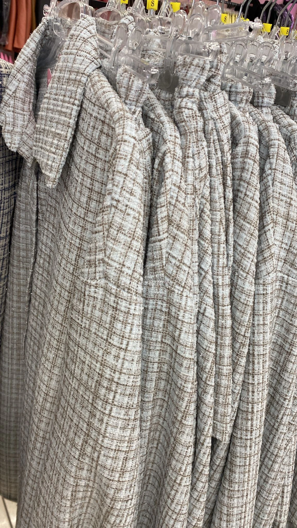 La Milla komplet tweedowy koszula i spodenki błękitno-szare - La Milla koszula i spodenki tweedy błękitno-szary na wiosnę ze srebrną nitką