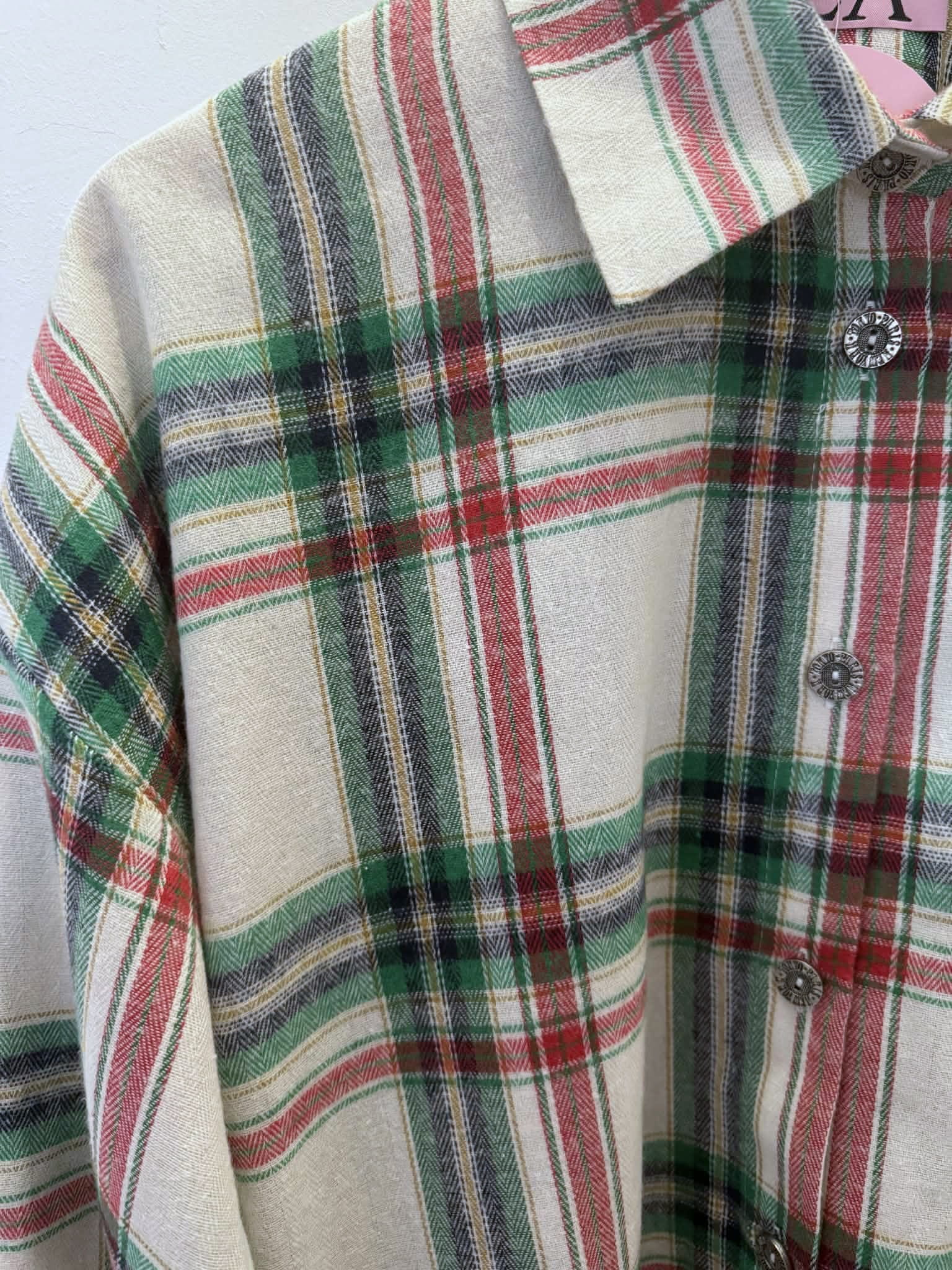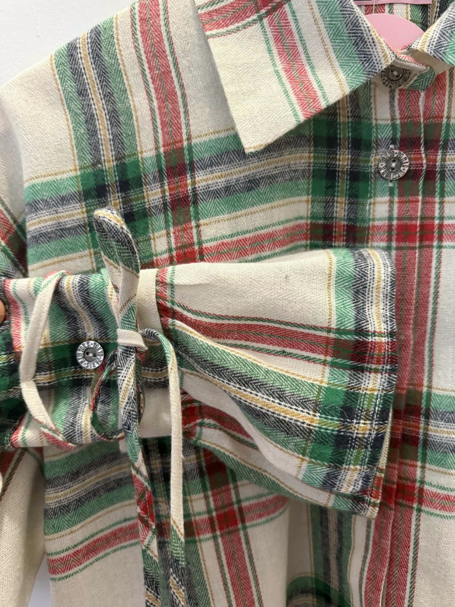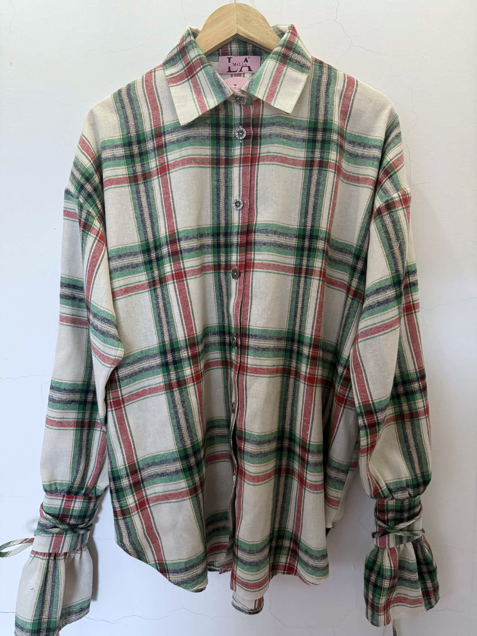 La Milla Koszula w kratę zielono-czerwona z wiązaniami na mankietach