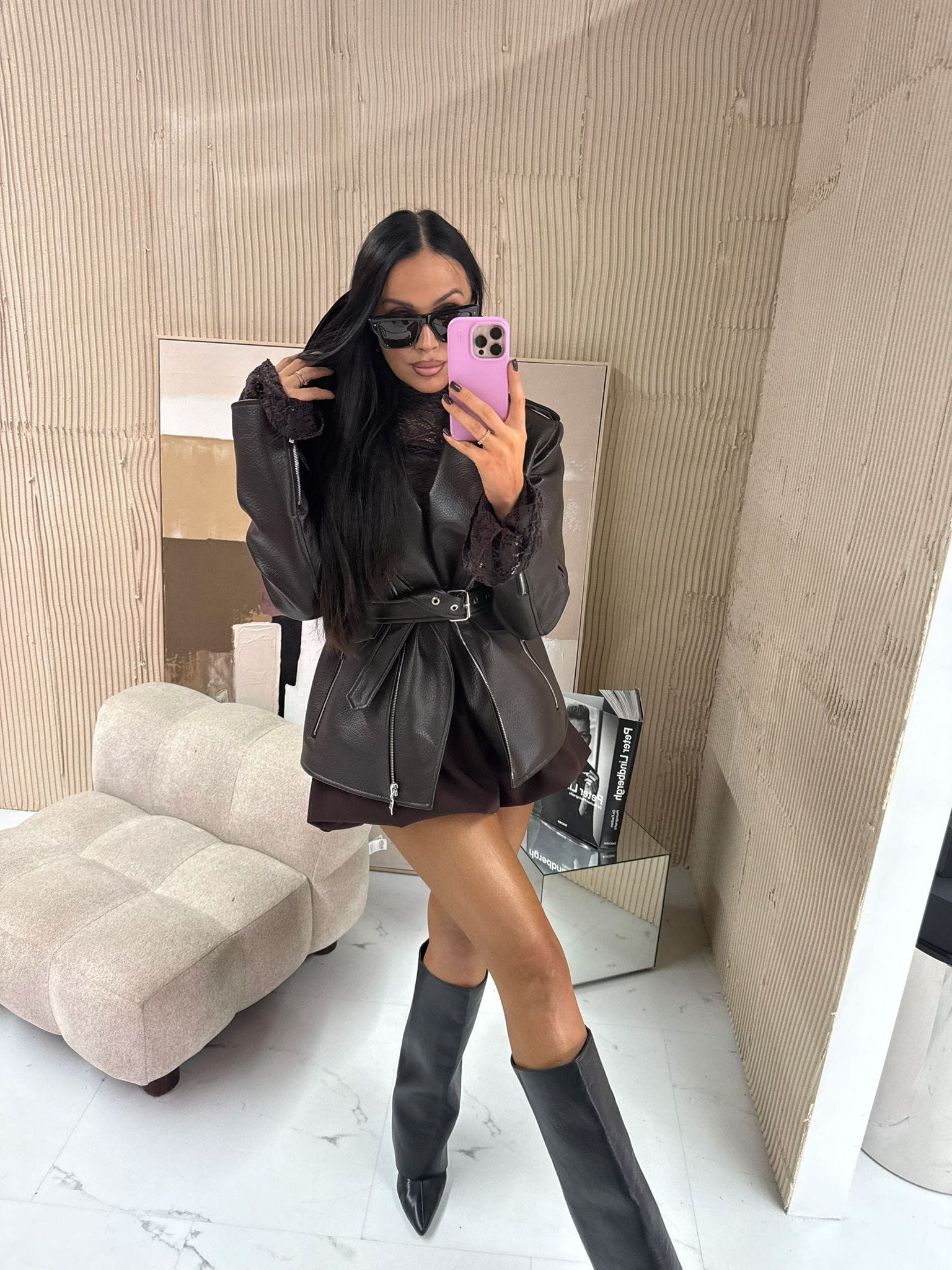Kurtka skórzana czekoladowa, kurtka czekoladowa Pauliny rzeźniczak