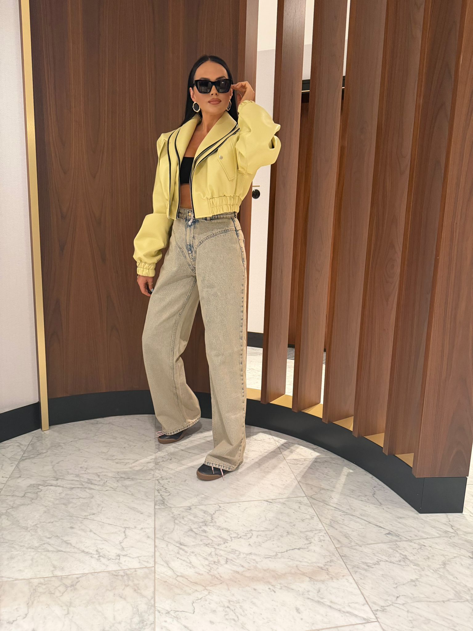 Kurtka skórzana La Milla limonkowa - najmodniejsza i stylowa skórzana kurtka limonkowa La Milla