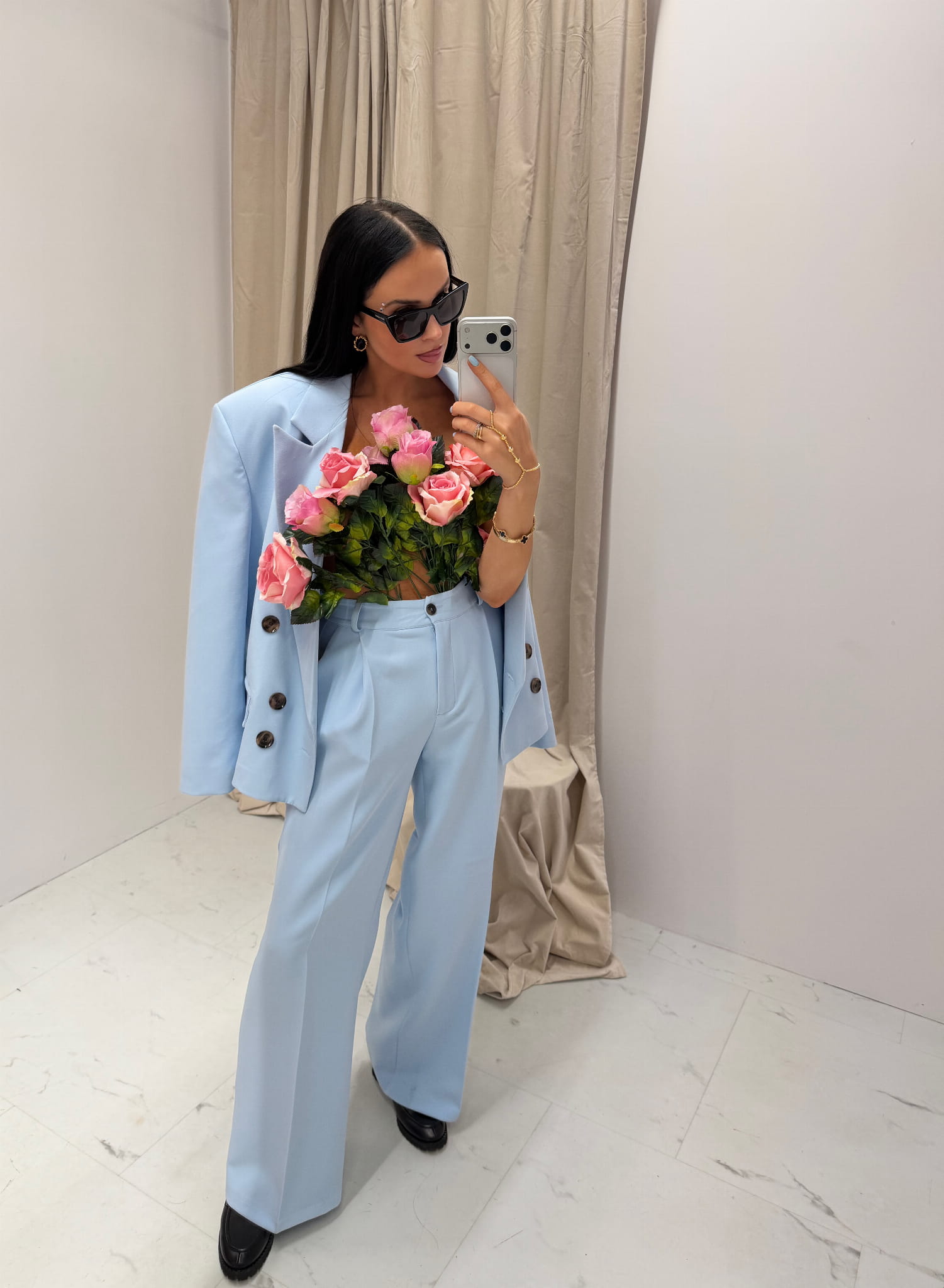 Spodnie La Milla błękitne to najnowsza elegancka propozycja dla Pań ceniących sobie styl i komfort. La Milla spodnie z szeroką, prostą nogawką to idealny wybór na formalne spotkania jak i codzienne wyjścia. Wysoki stan spodni i szerokie nogawki dodają całej stylizacji eleganckiego wyglądu. Spodnie posiadają kieszenie i są zapinane na guzik. Spodnie La Milla błękitne możesz połączyć z naszą marynarką La Milla błękitną w tym samym kolorze tworząc stylowy i elegancki błękitny garnitur. Idealna baza szafy kapsułowej, dzięki której stworzysz dziesiątki stylizacji.
