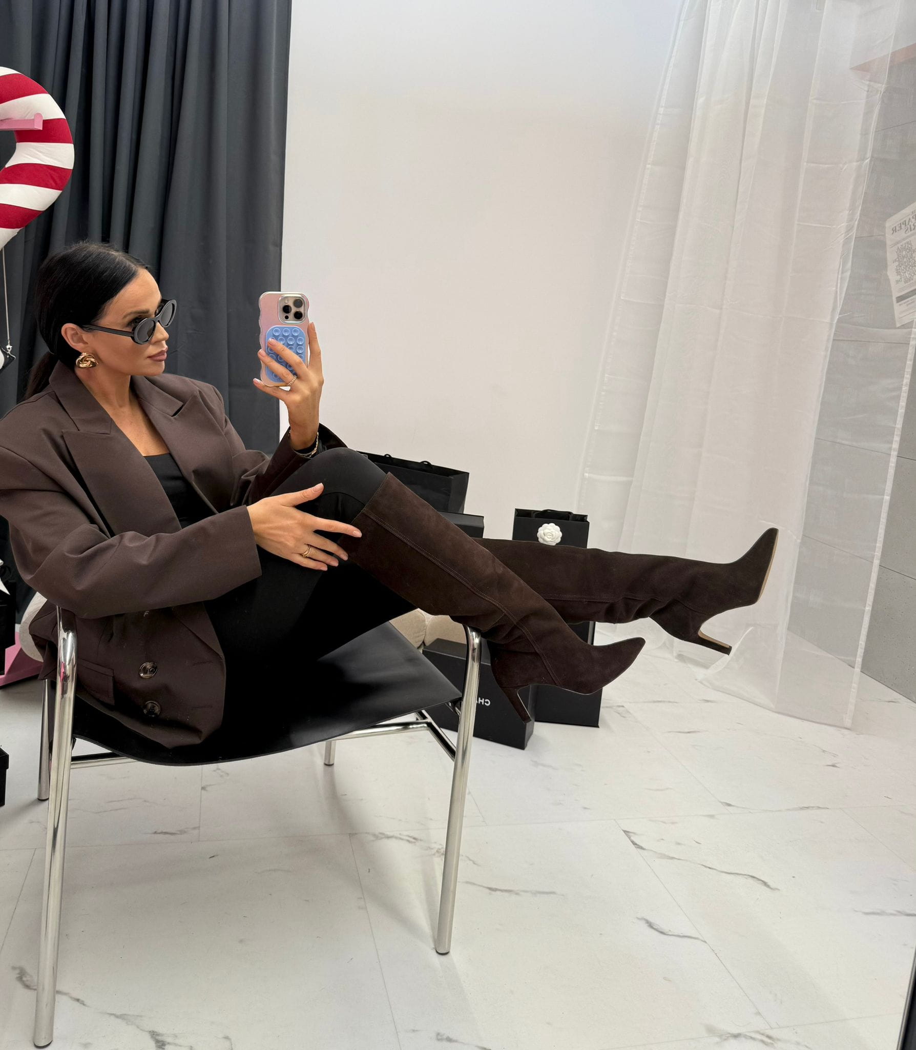 La Milla kozaki damskie zamszowe skóra naturalna - wygodne kozaki La Milla zamszowe w kolorze brązowym