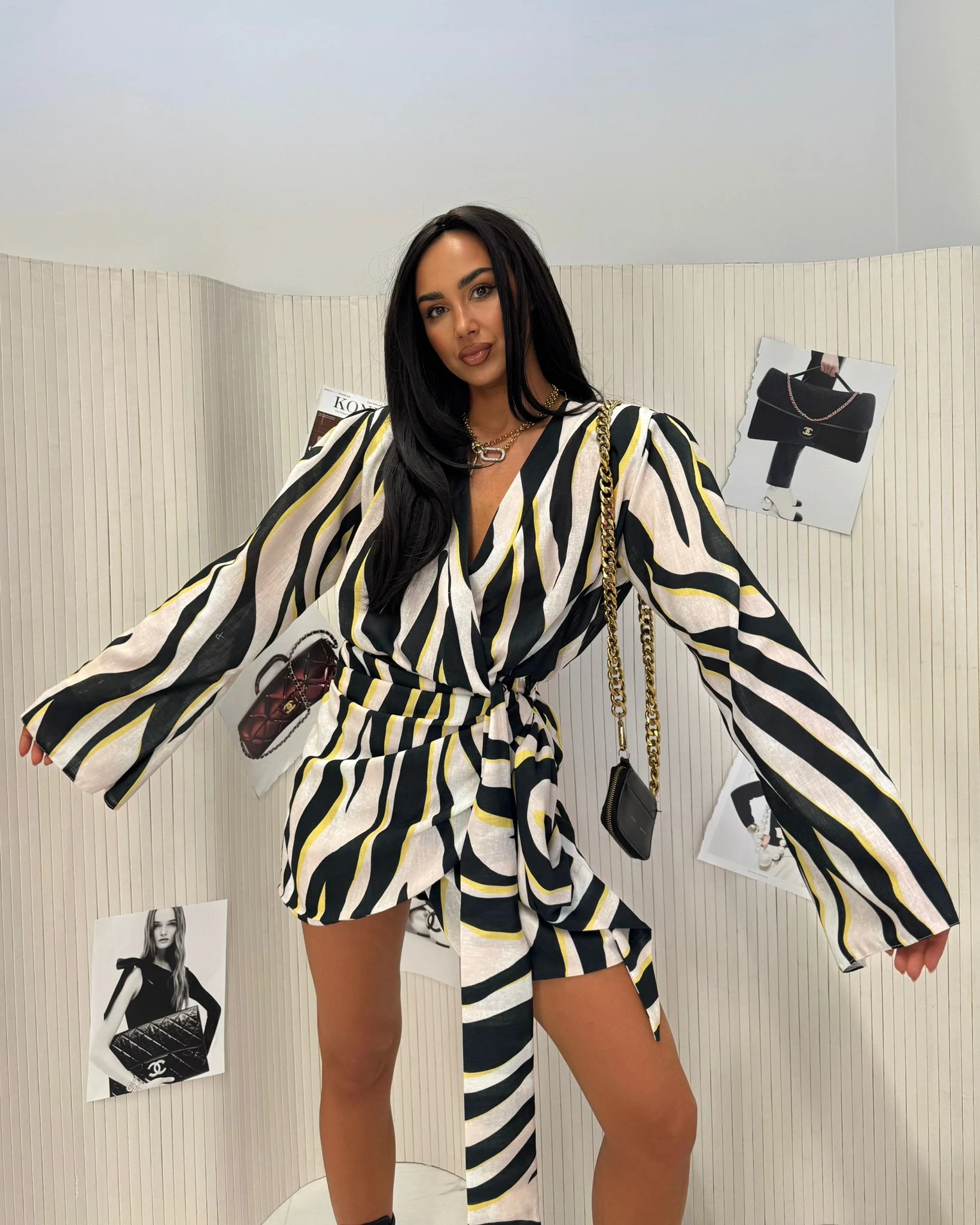 La Milla sukienka kimono zebra z żółtym to jedna z najbardziej eleganckich i zmysłowych sukienek na letnie wyjście. Sukienka La Milla zebra z żółtym ma krój kimona, dzięki czemu niezwykle stylowo sprawdzi się podczas letniego wyjazdu czy na romantycznej kolacji w zależności od dodatków. La Milla sukienka ma wiązanie w pasie, a delikatne marszczenia maskują niedoskonałości. Długie bufiaste rękawy dodają sukience lekkości. Sukienka La Milla zebra to idealna propozycja, którą wykorzystasz na wiele okazji.
