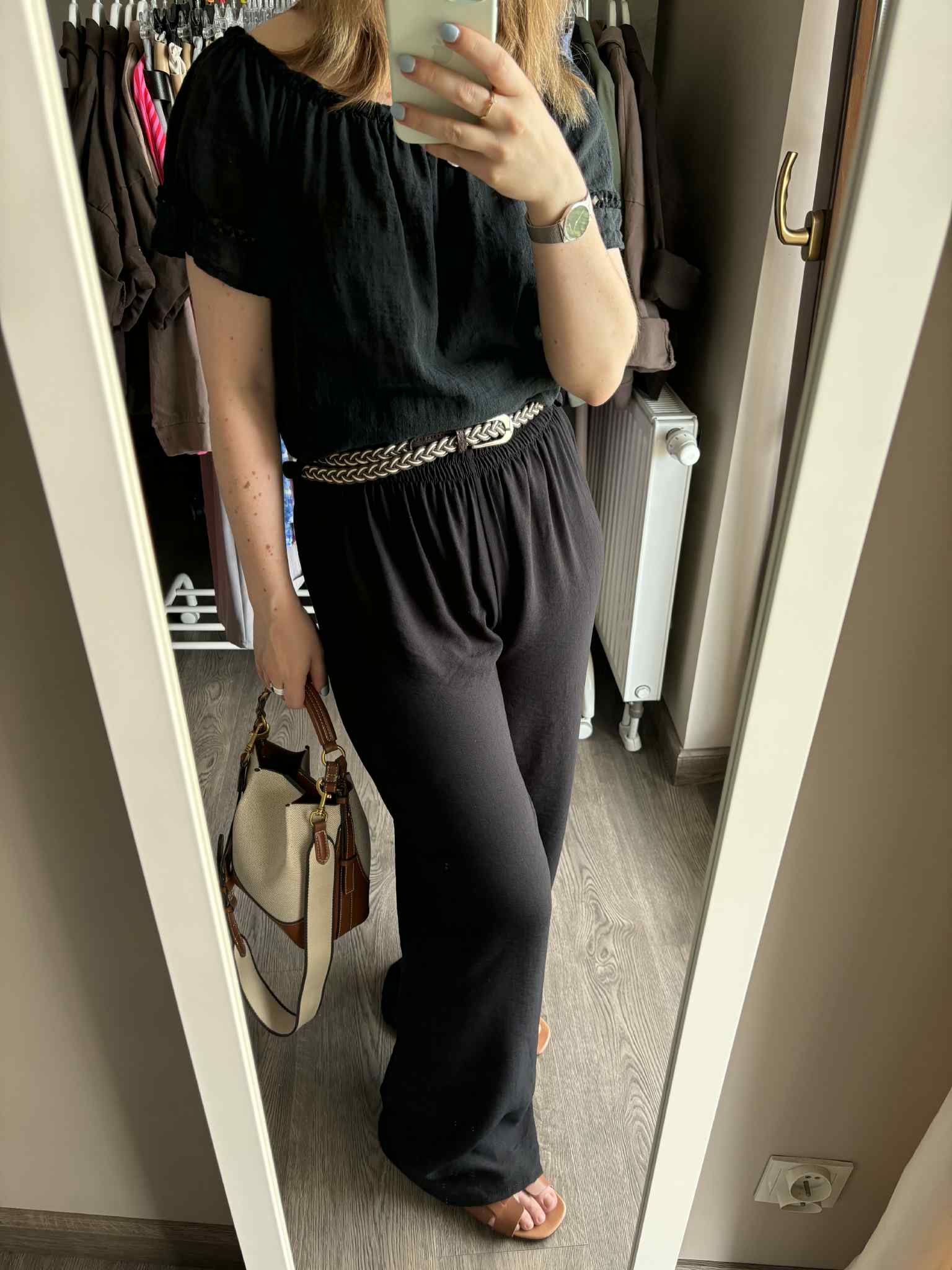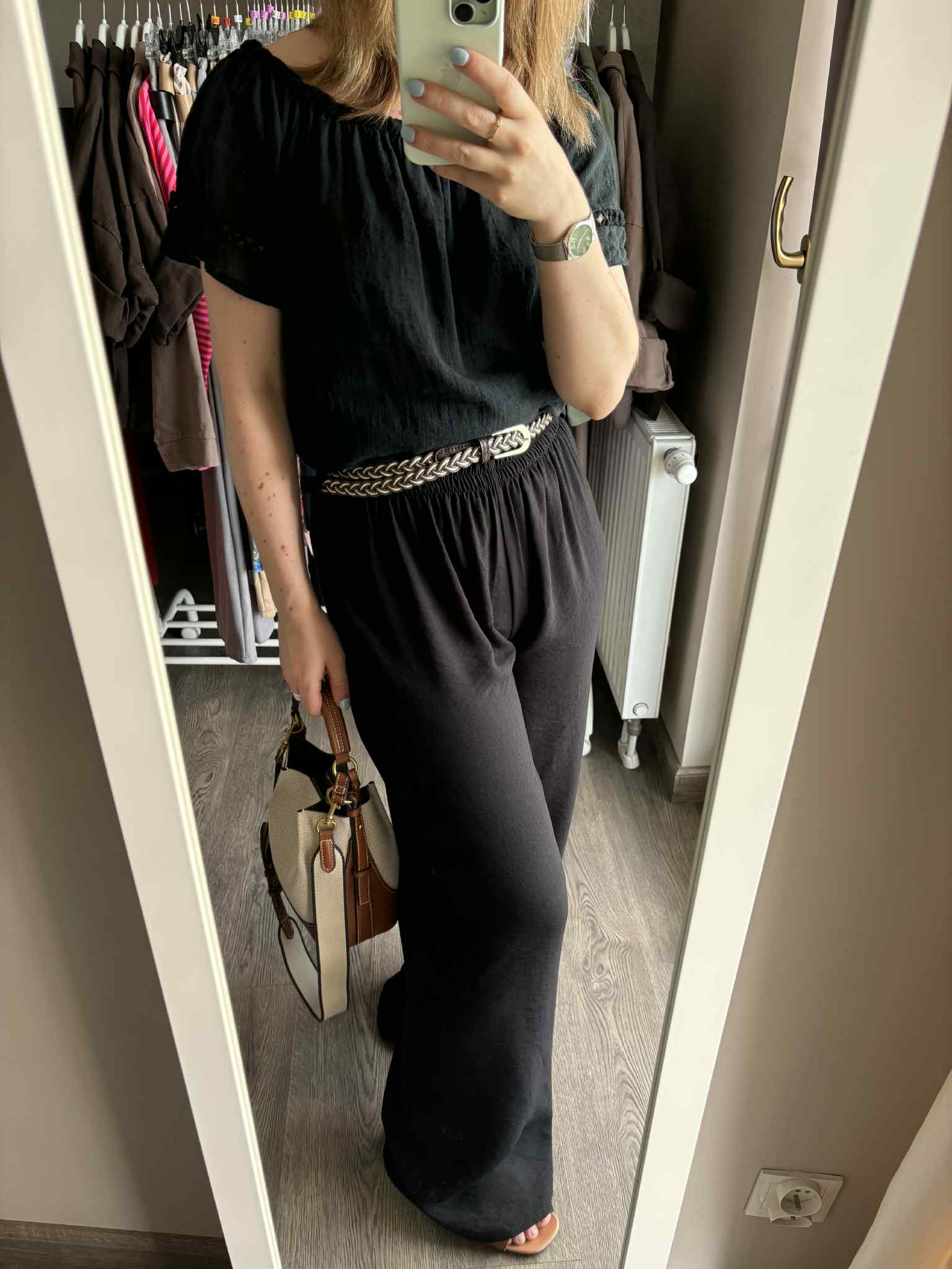 Spodnie wiskozowe w kolorze czarnym to luźny model spodni, który idealnie sprawdzi się na wiosnę i lato. Spodnie wiskozowe są delikatne i lejące się. Delikatne jak mgiełka. Spodnie z wiskozy świetnie sprawdzą się w sportowych stylizacjach, ale dobierając do nich szpilki stworzysz z nimi elegancką stylizację. Luźne spodnie damskie posiadają gumę w pasie, przez co dopasowują się do sylwetki i świetnie sprawdzą się dla Pań w większym rozmiarze. Pasek w zestawie. Spodnie mają prostą długą nogawkę, przez co nie problemu z ich skróceniem.