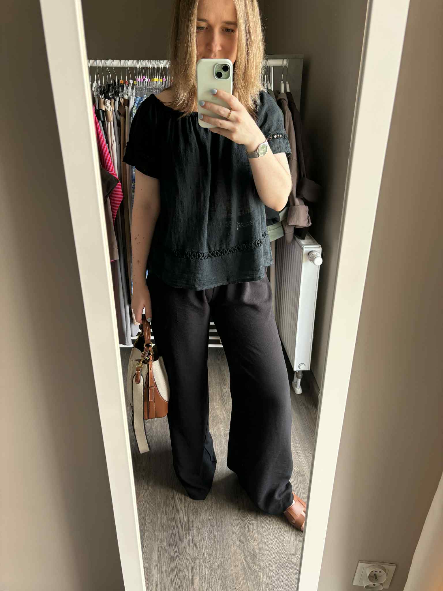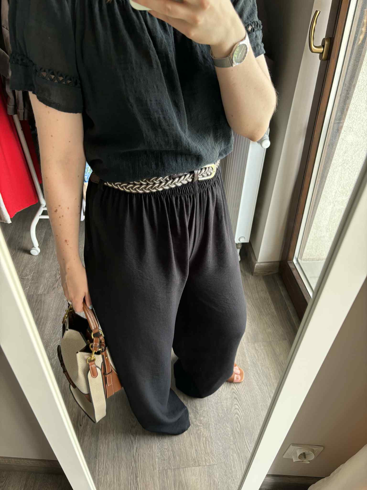 Luźne spodnie wiskozowe czarne gumka w pasie