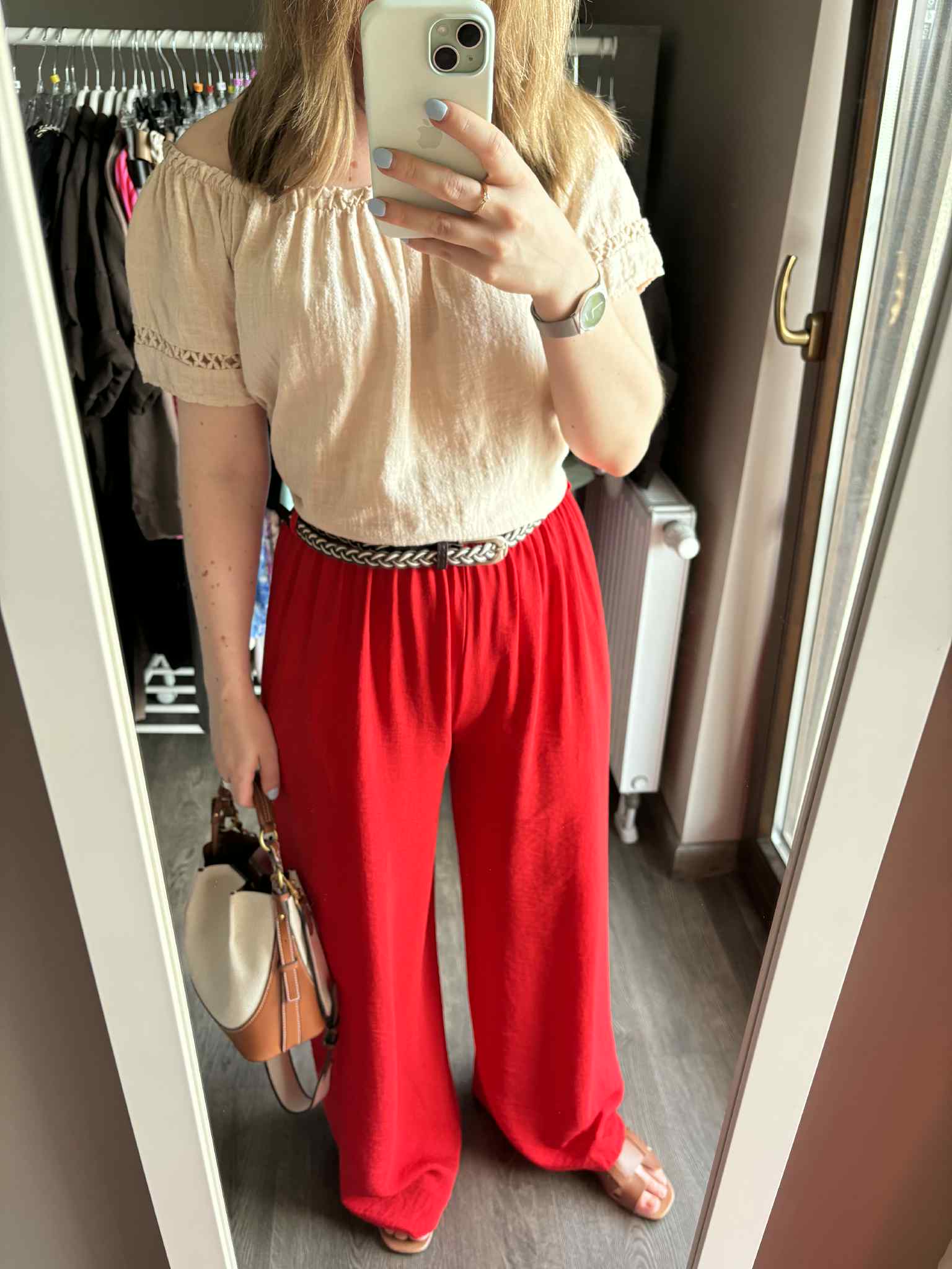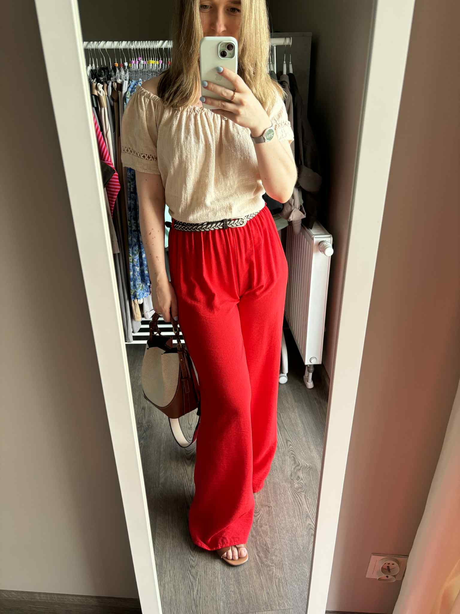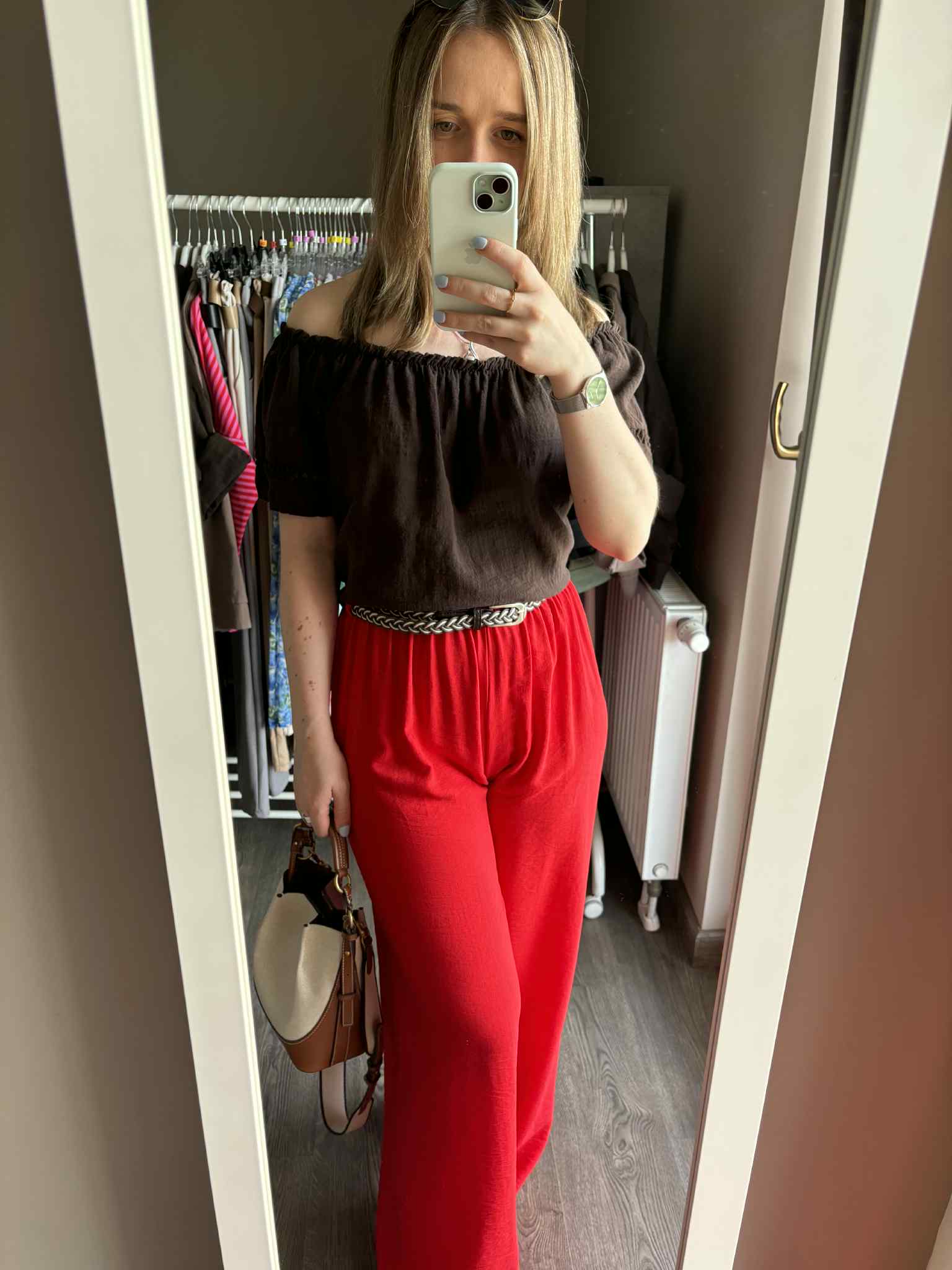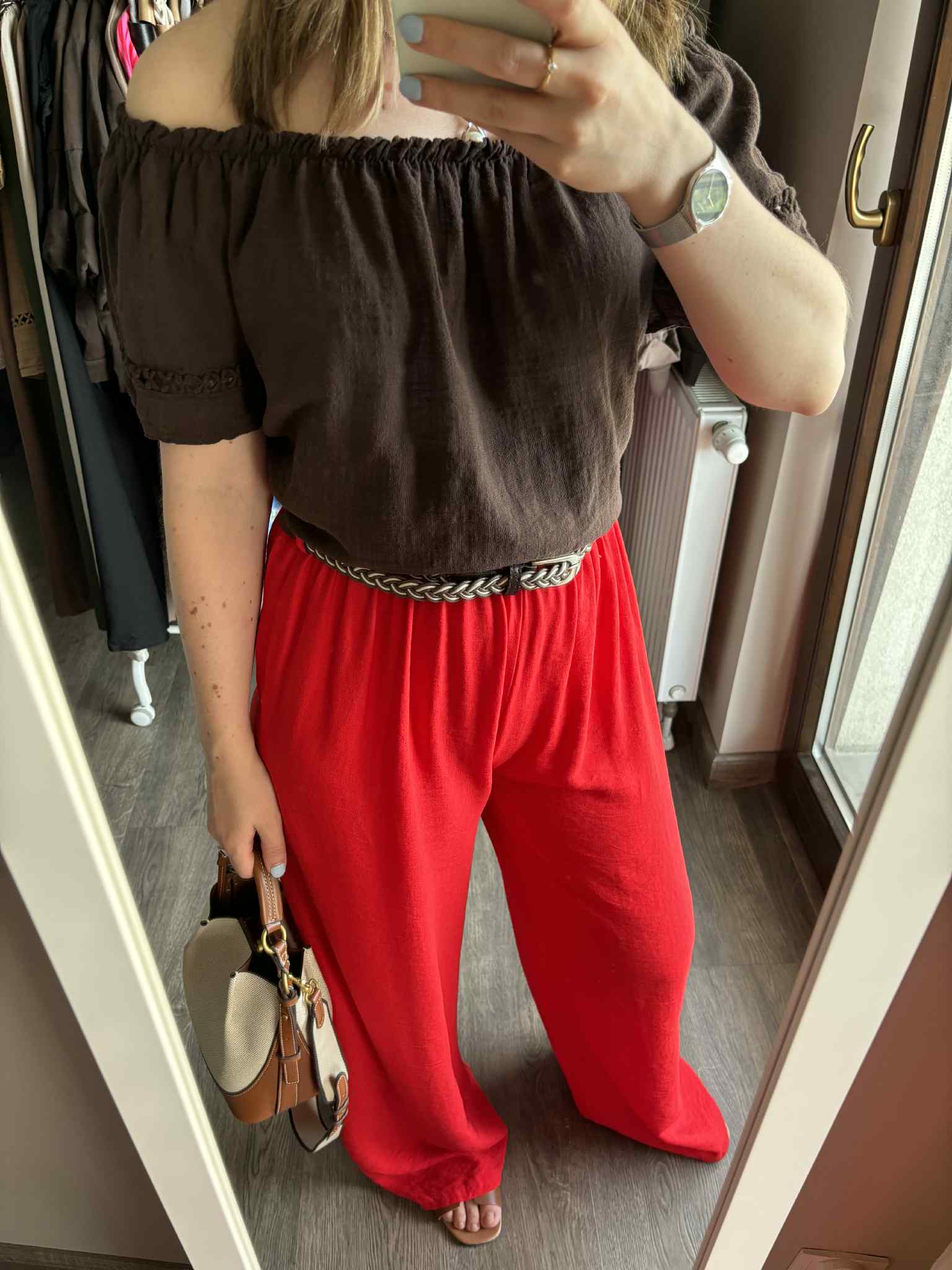 Luźne spodnie wiskozowe czerwone gumka w pasie