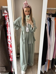 Spodnie wiskozowe mają długie nogawki, dlatego polecam na wysokie Panie (170-182cm). Jeżeli chodzi o długość, nie ma problemu ze skróceniem nogawki.
