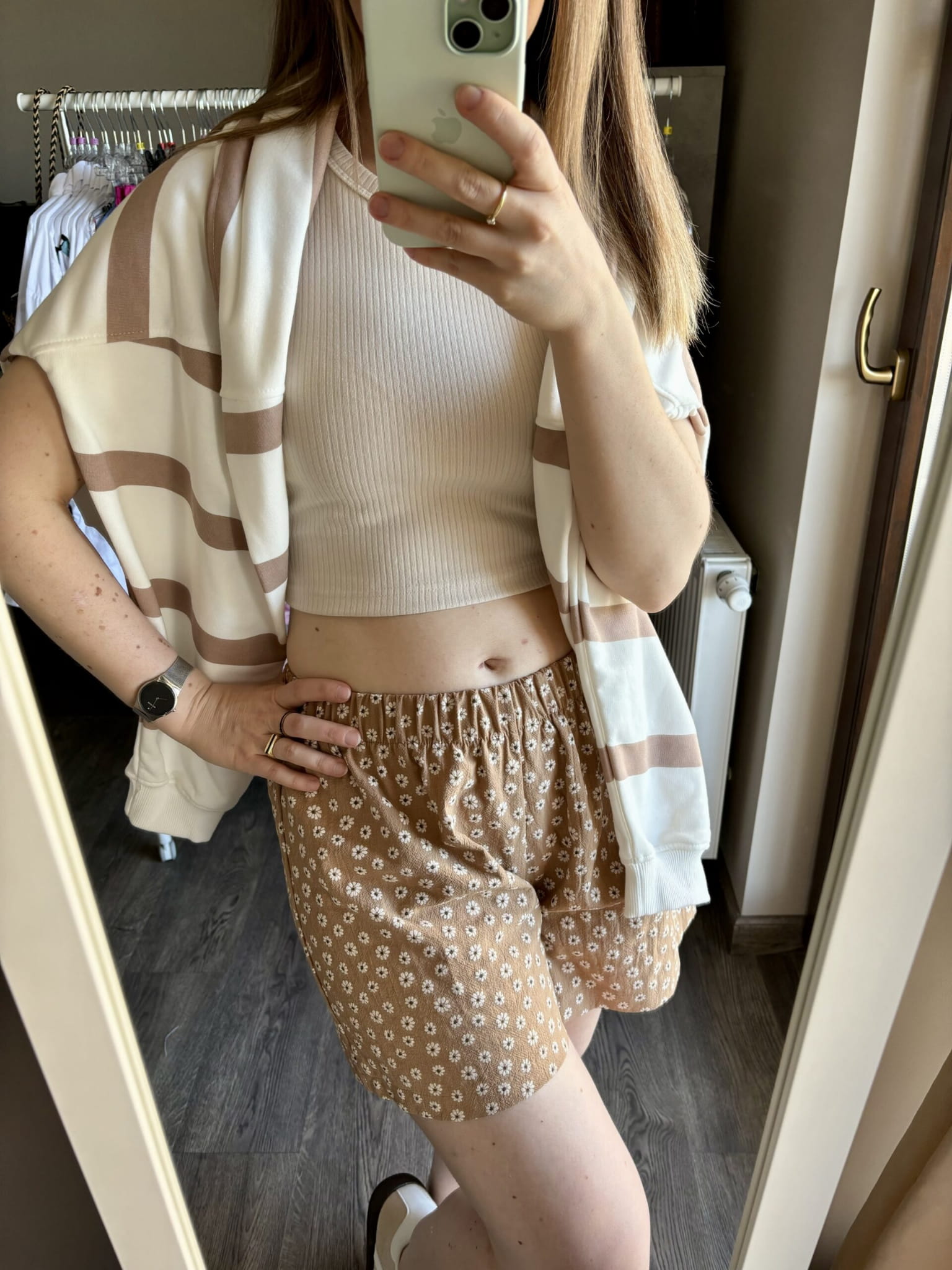 Spodenki stokrotki w kolorze kawowym świetnie sprawdzą się podczas letnich dni. Wykonane z największą starannością, idealnie sprawdzą się z naszym krótkim topem lub koszulą i ulubionymi sneakersami.