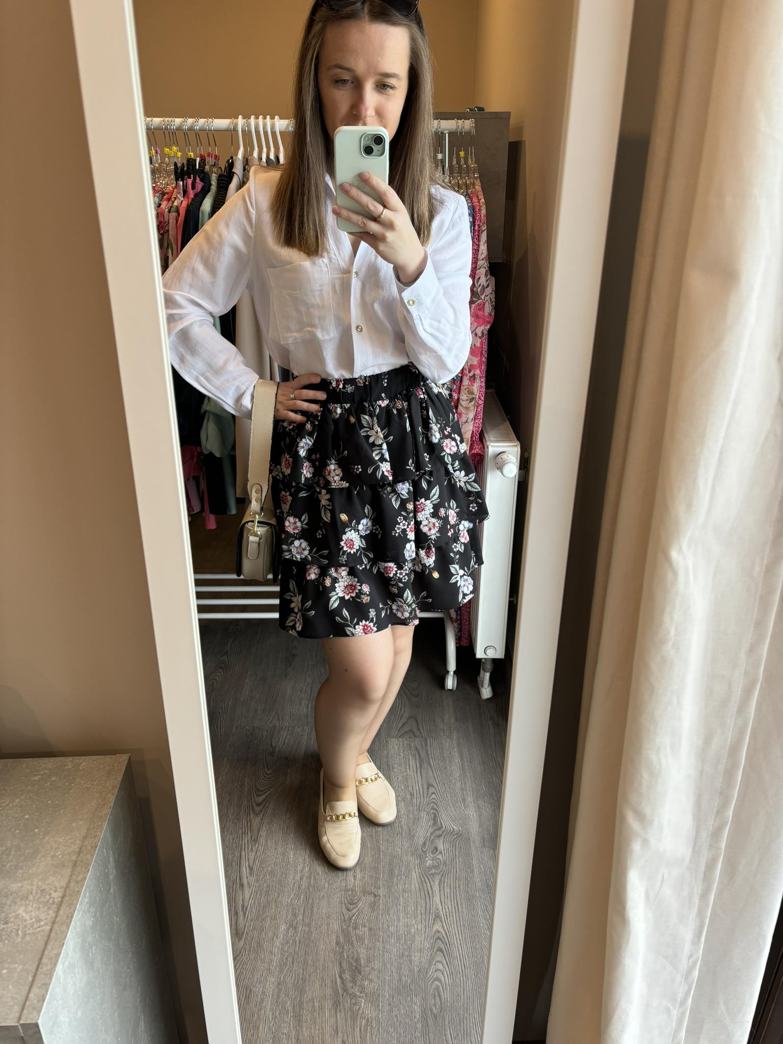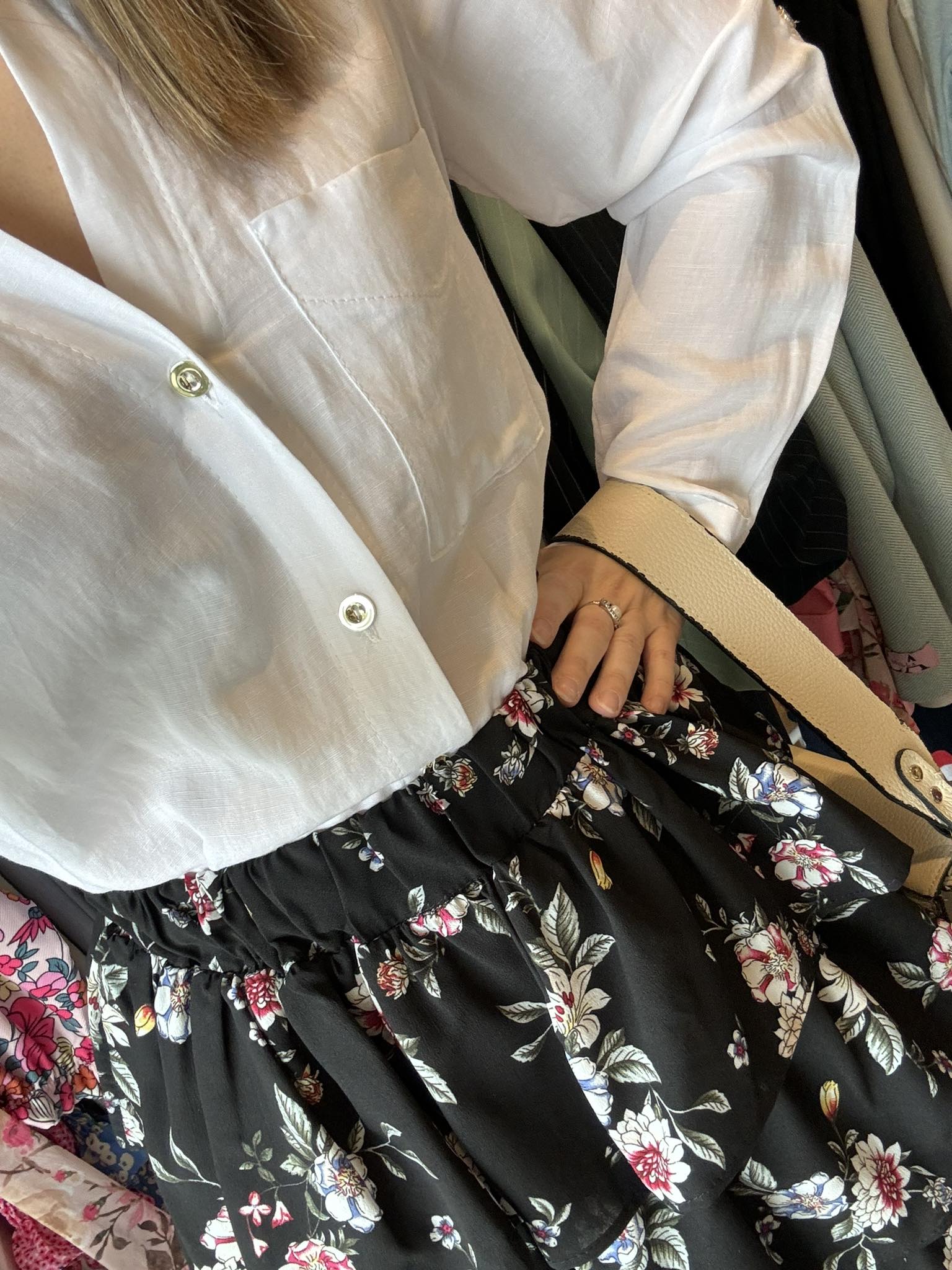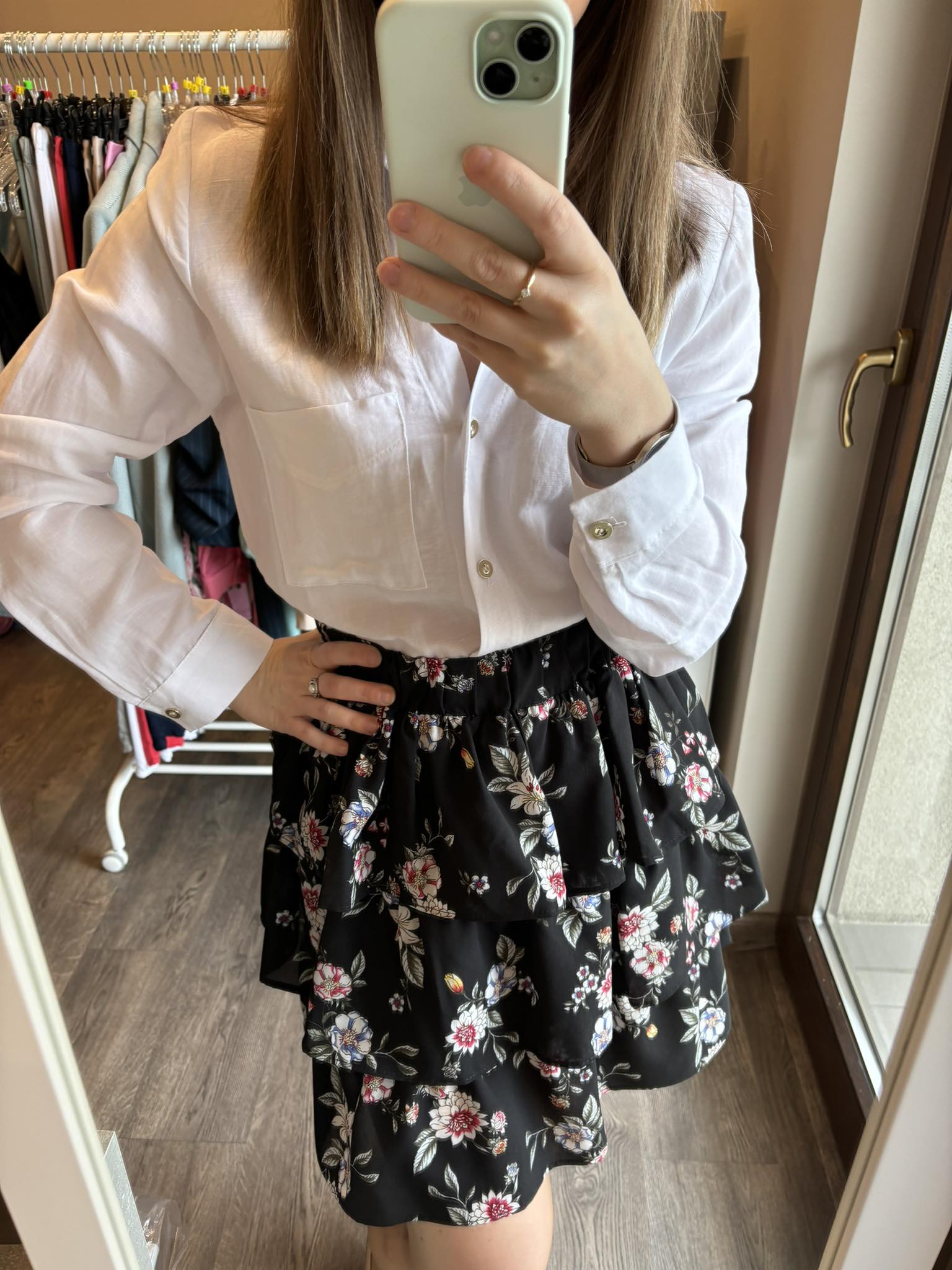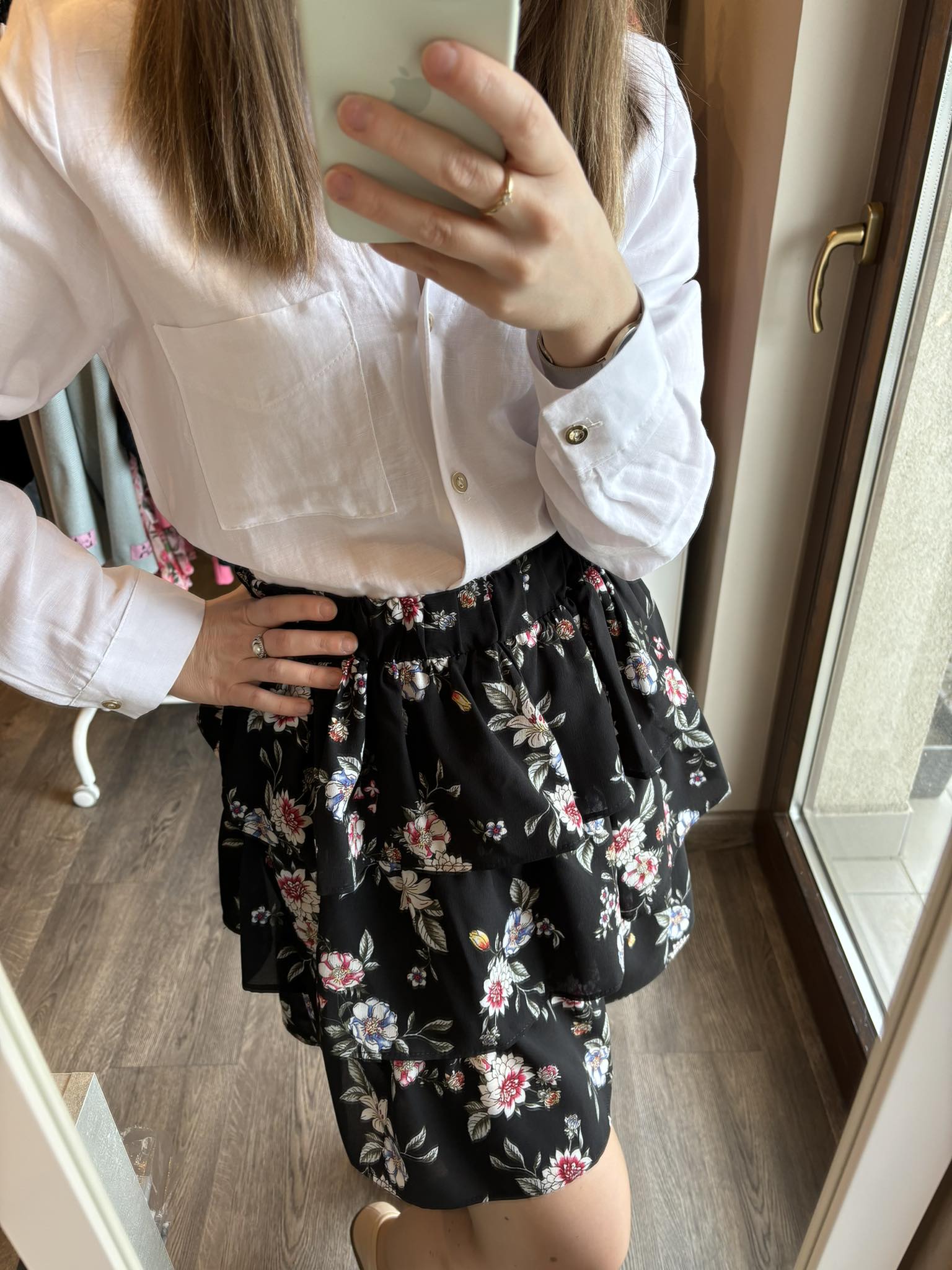 Spódniczka czarma z falbankami w delikatne kwiaty. Spódniczka ma 3 falbany i jest świetną propozycją na wiosenne i letnie stylizacje. Dobierzesz do niej top, koszulę lub tshirt. Sprawdzi się w zarówno sportowych jak i eleganckich stylizacjach.