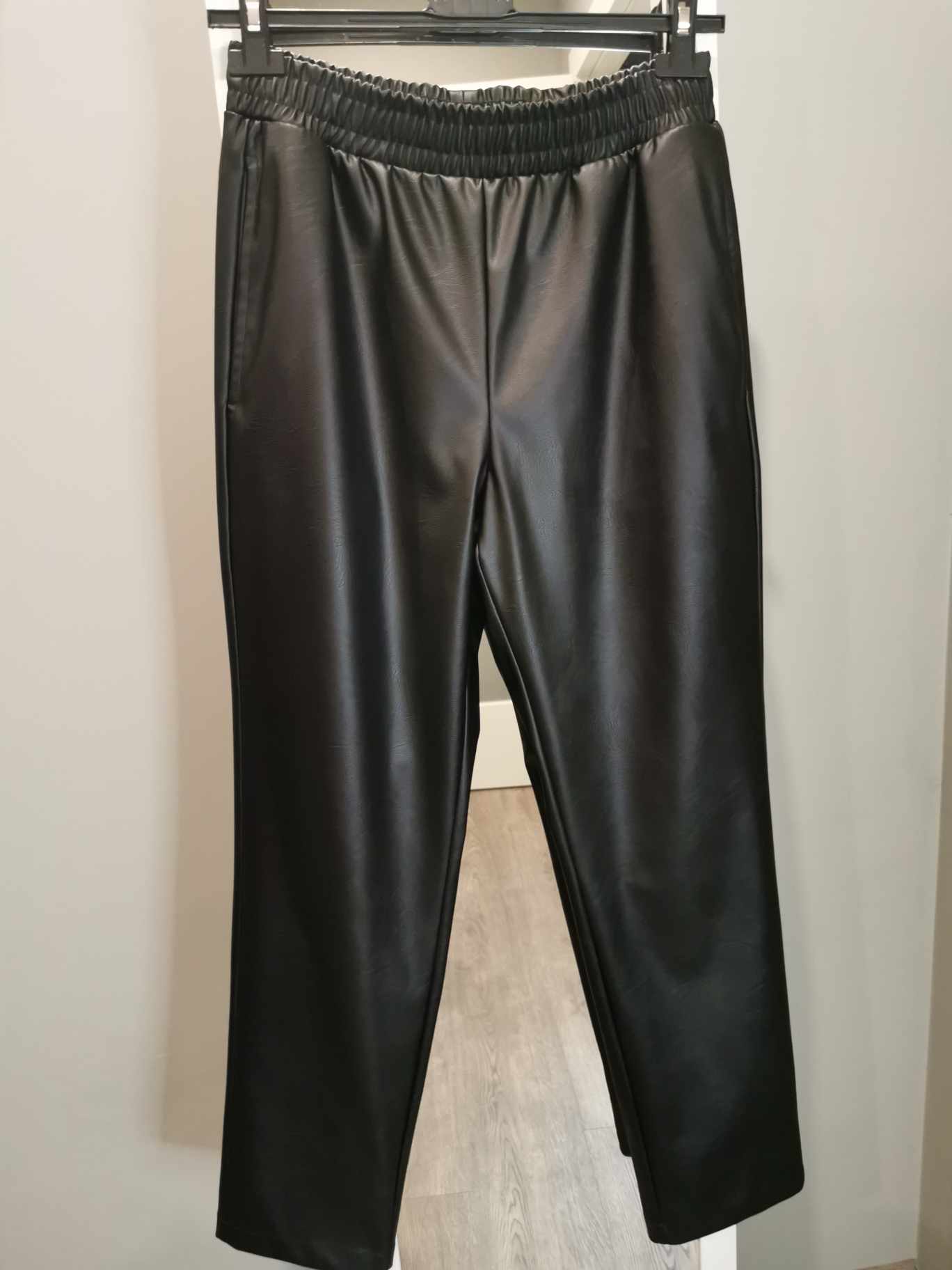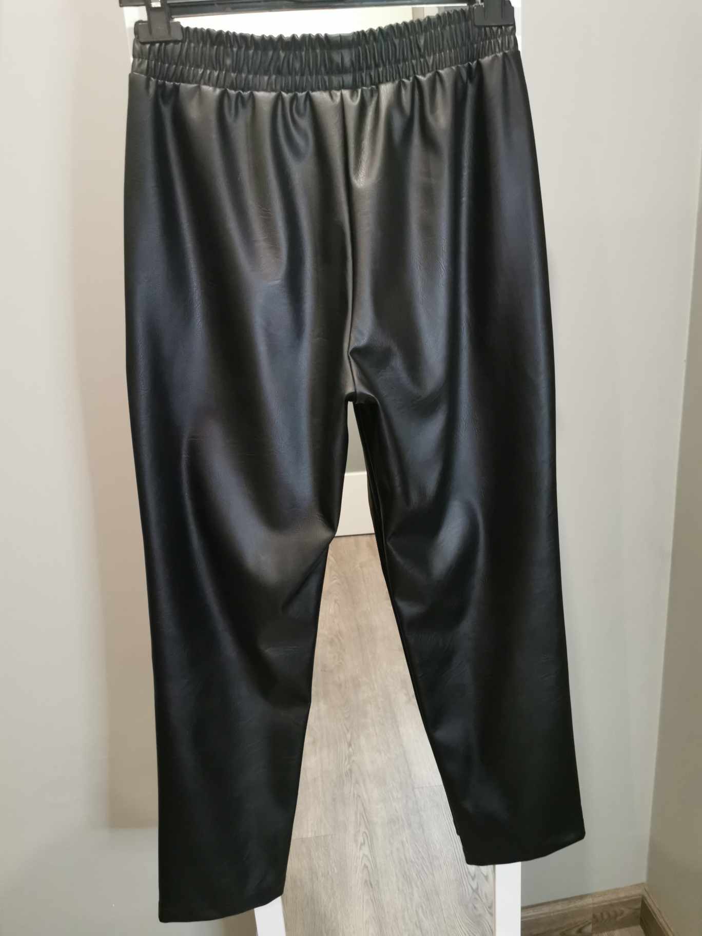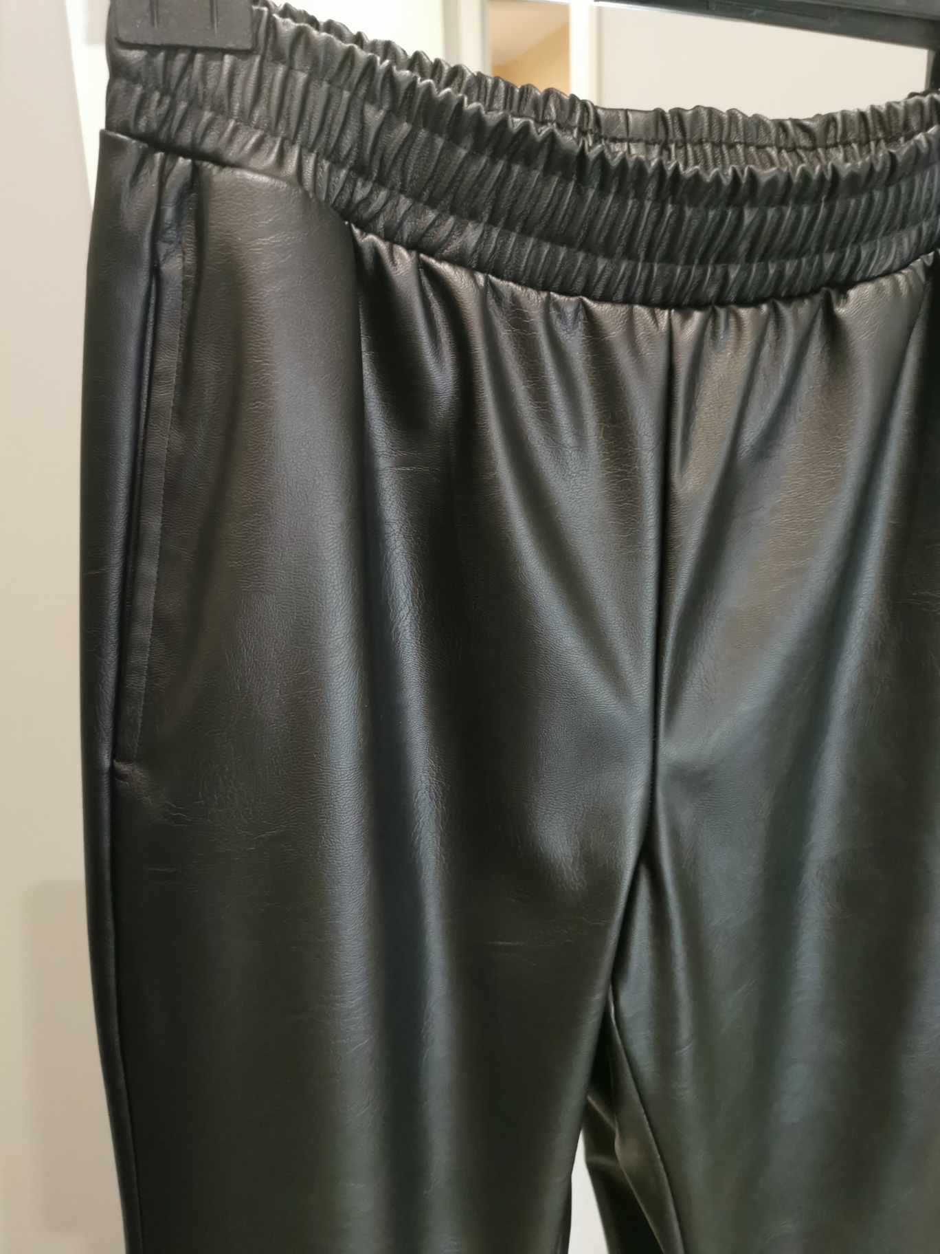 Spodnie skórzane z gumą w pasie czarne