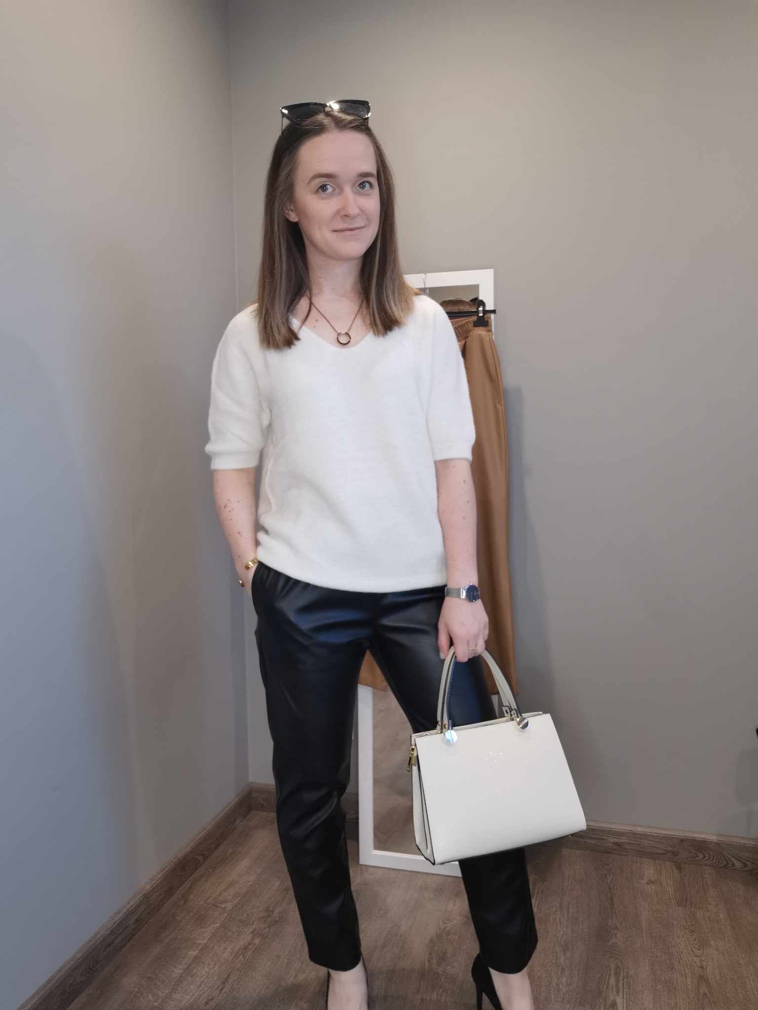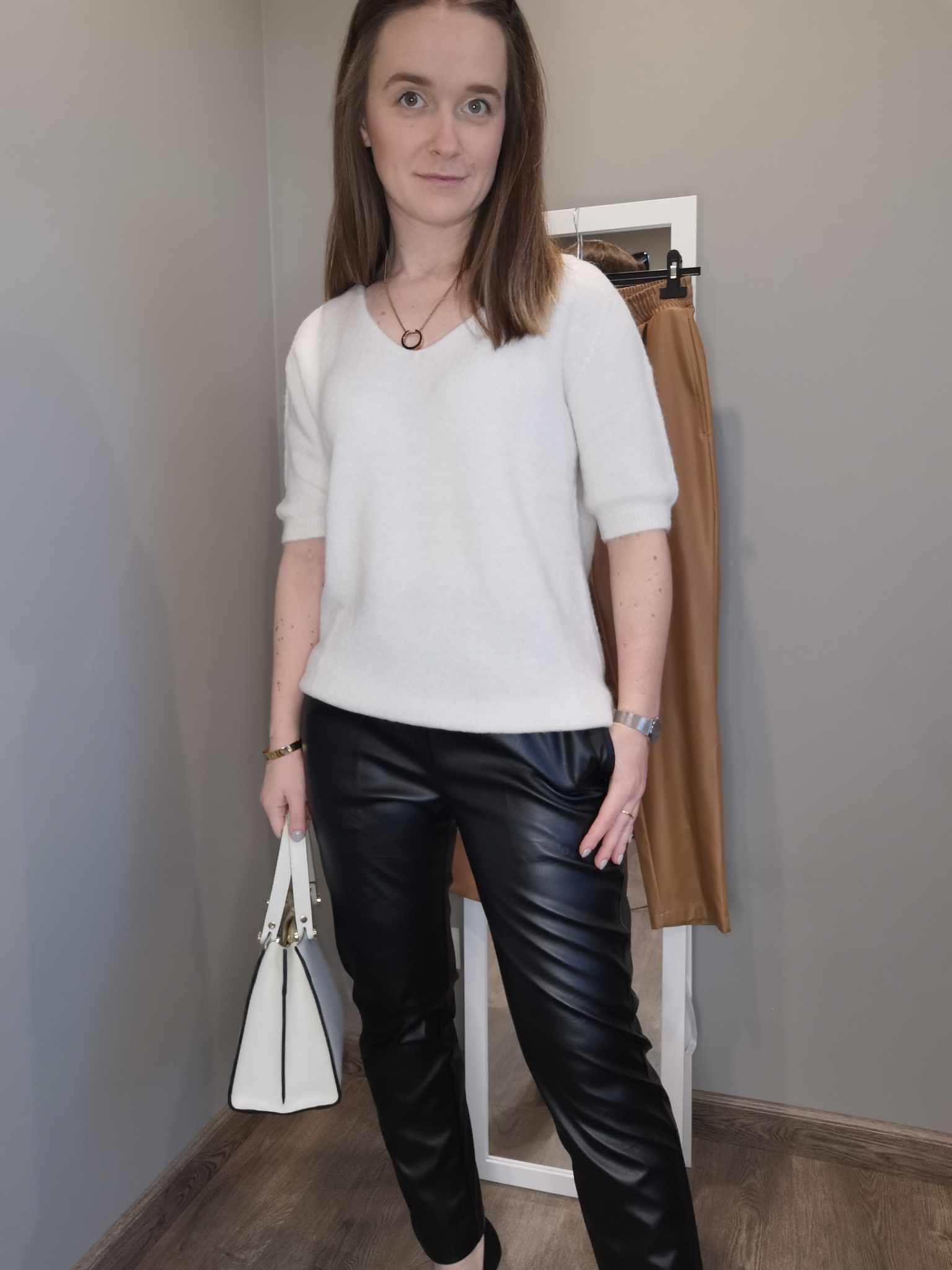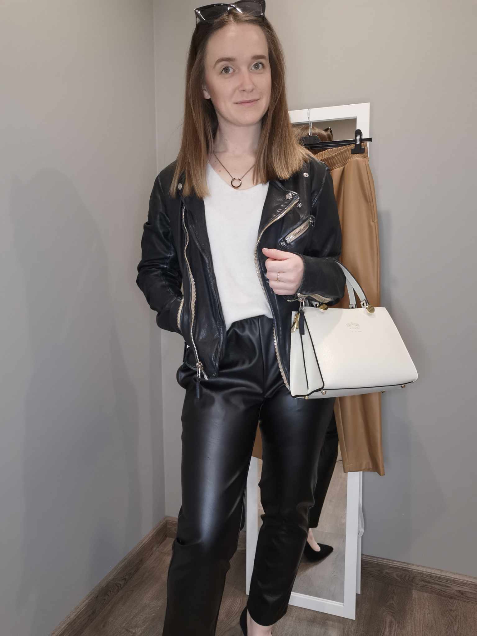 Spodnie skórzane z gumą w pasie czarne