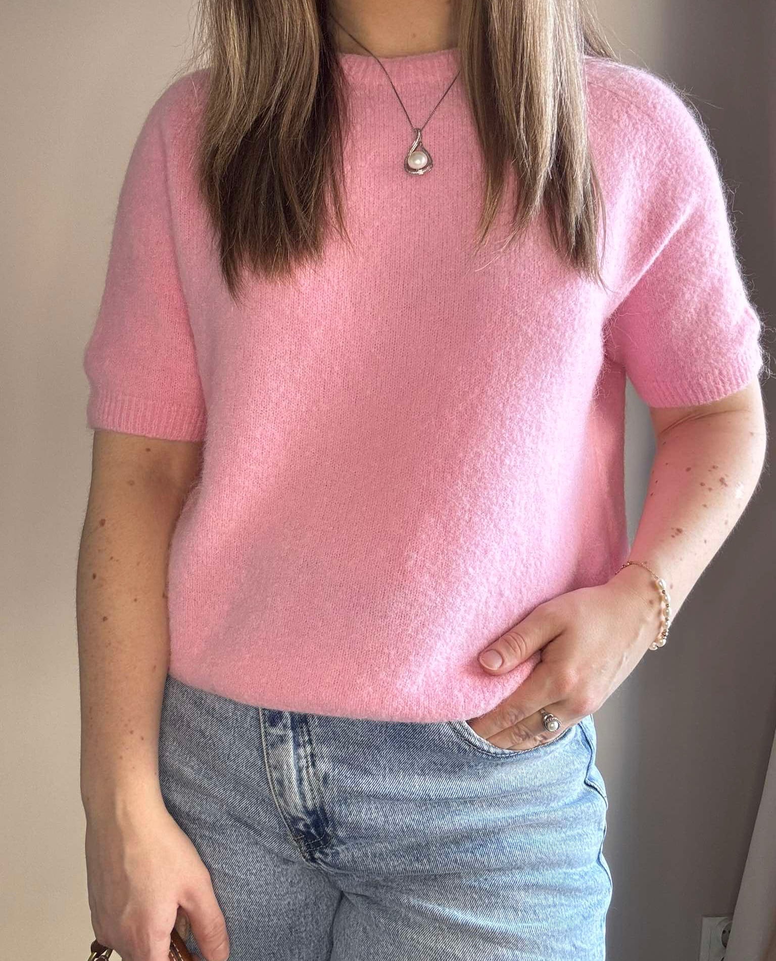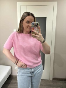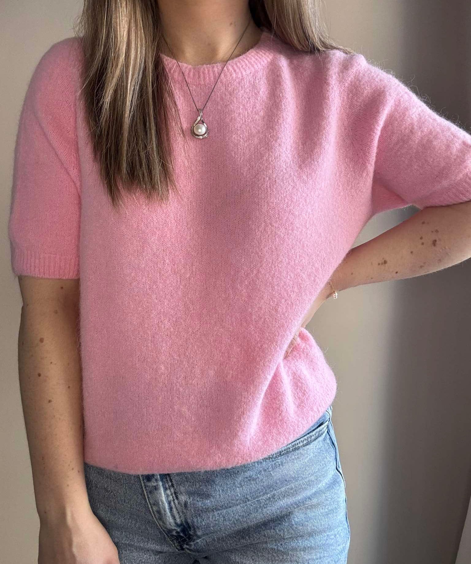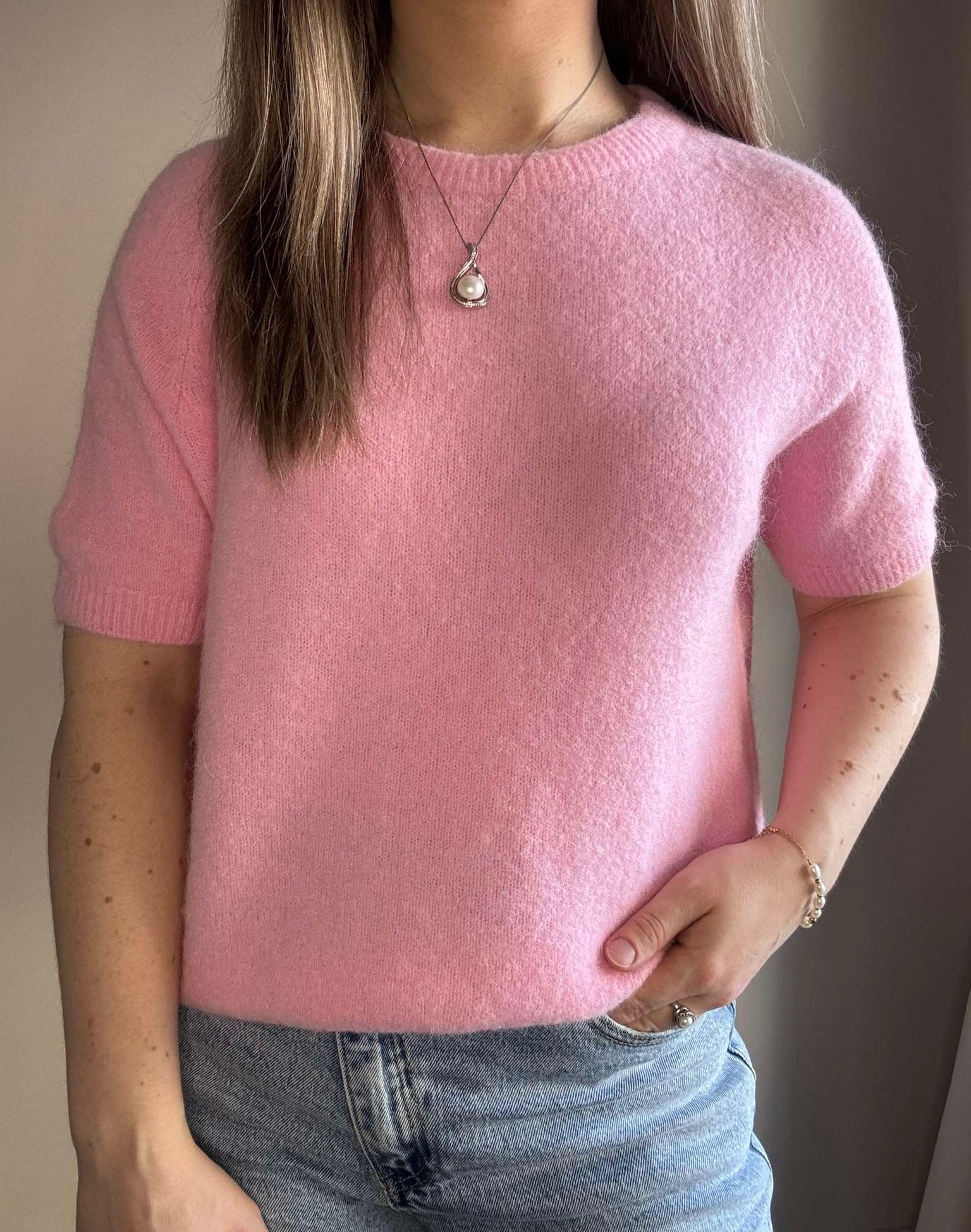 Sweter baby alpaca w kolorze różowym wykonany z wysokiej jakości materiału. Krótki rękaw. Świetnie sprawdzi się z jeansami lub spódnicami we wiosennych stylizacjach. Delikatny i przyjemny dla skóry.