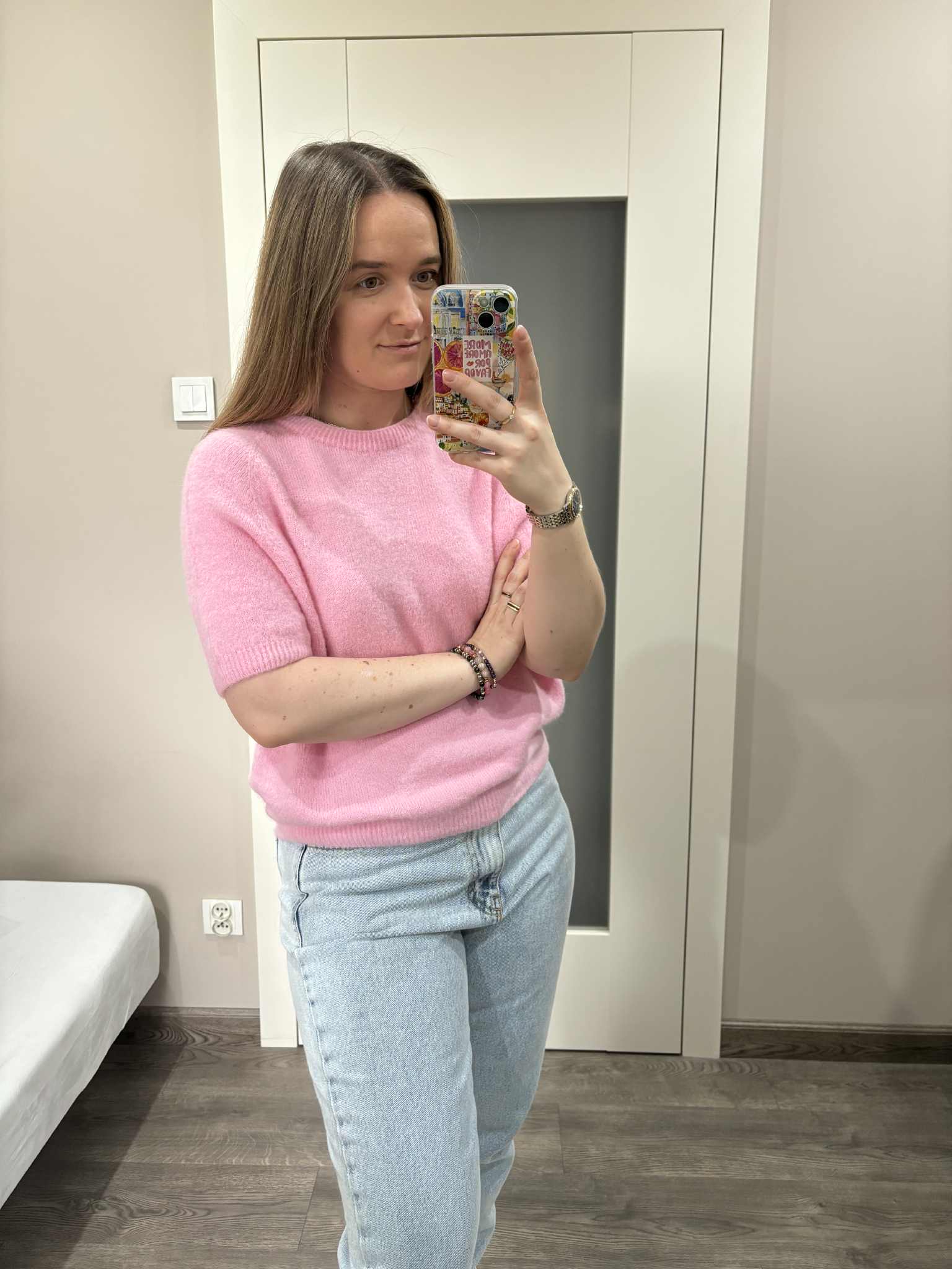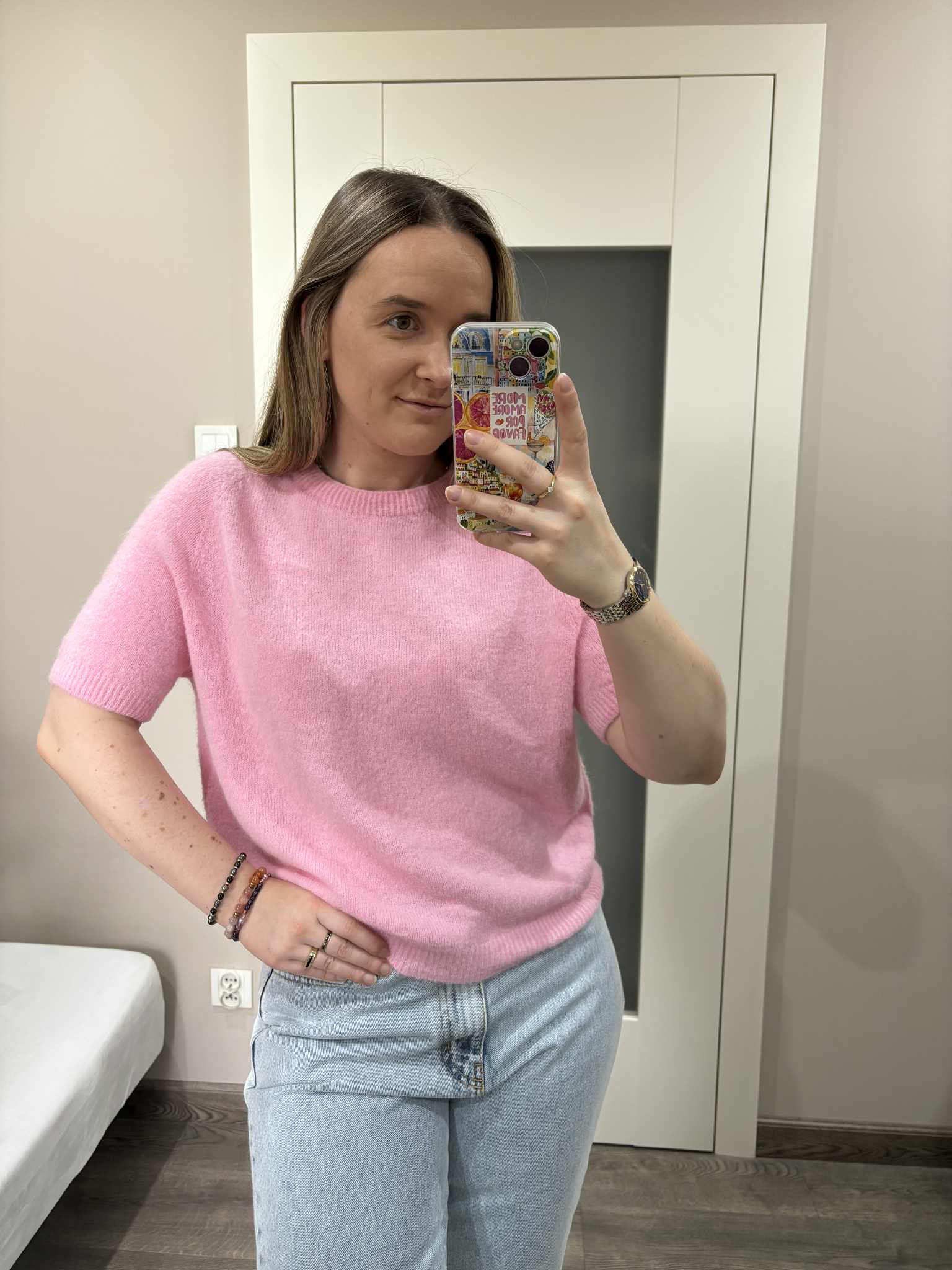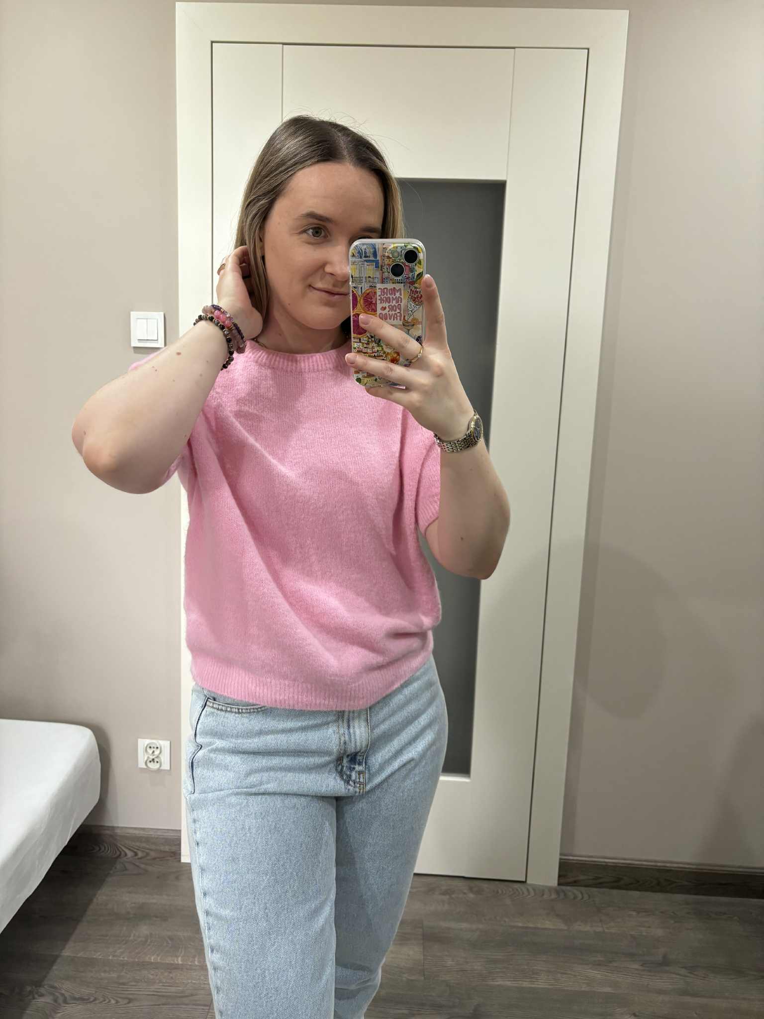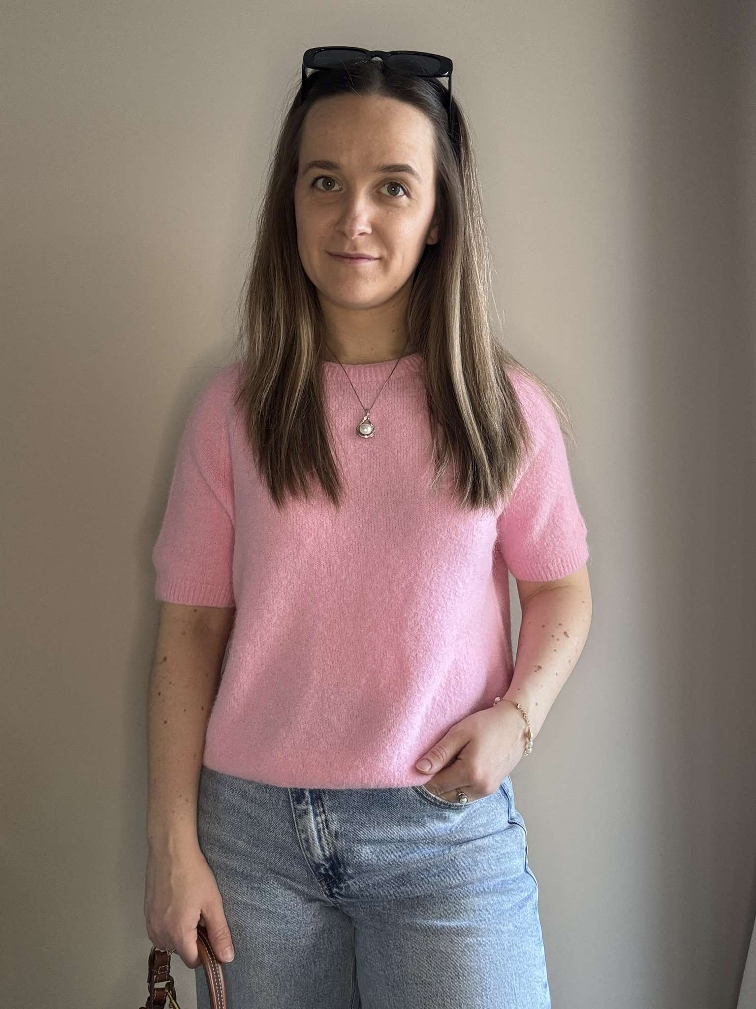 Sweter baby alpaca w kolorze różowym wykonany z wysokiej jakości materiału. Krótki rękaw. Świetnie sprawdzi się z jeansami lub spódnicami we wiosennych stylizacjach. Delikatny i przyjemny dla skóry.