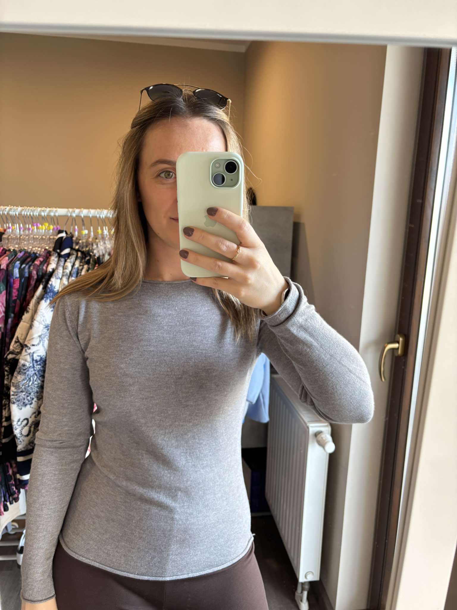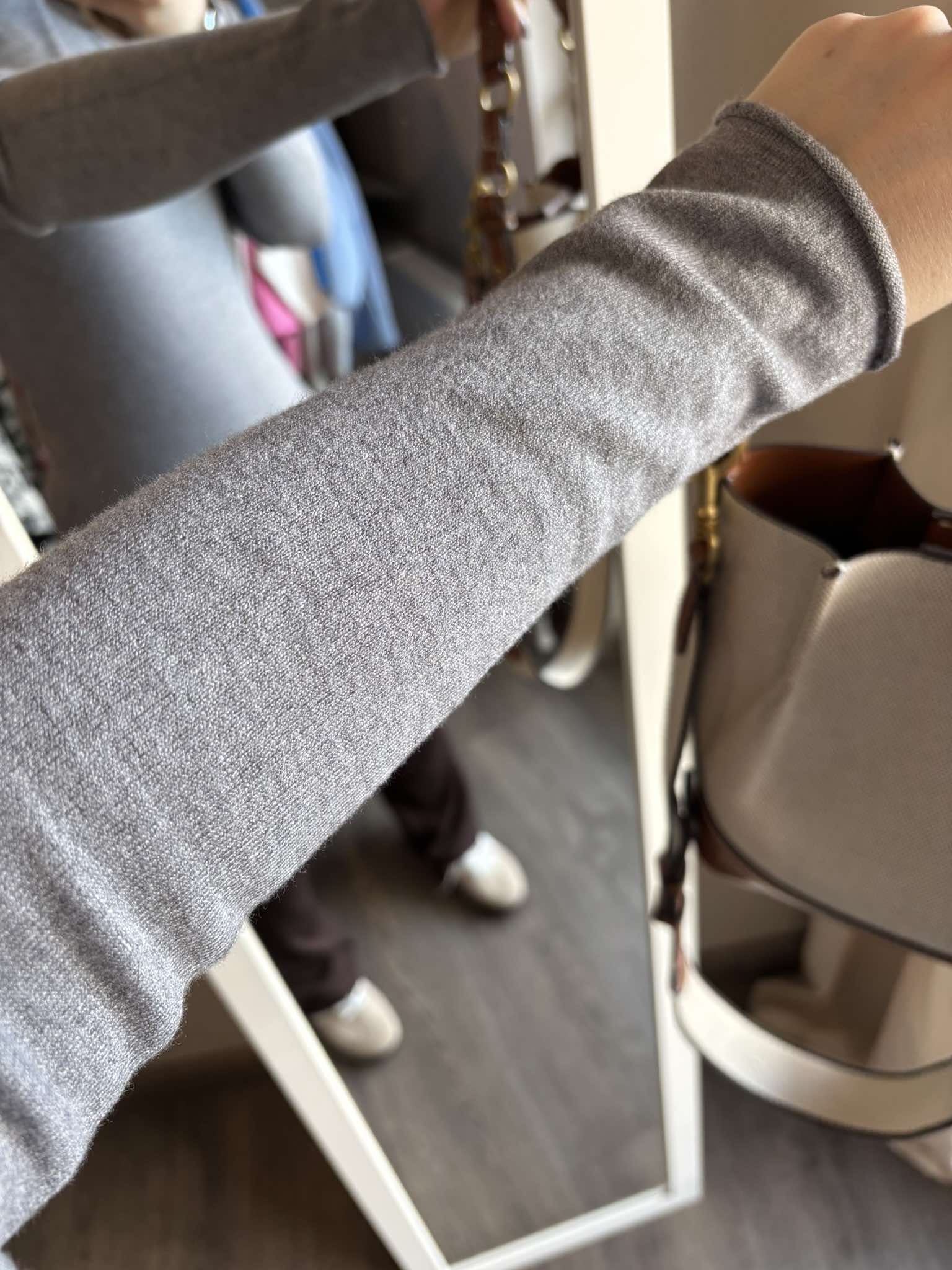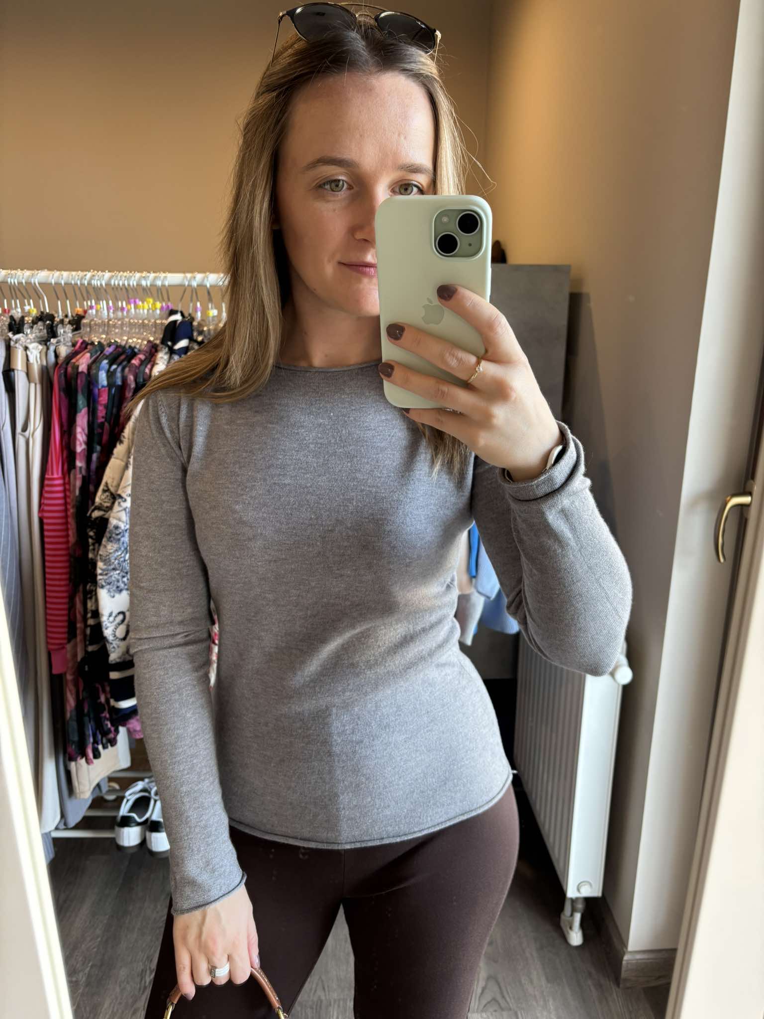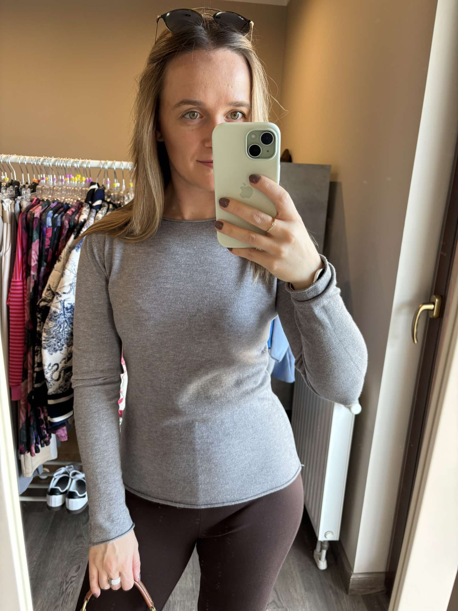 Wykończenie na surowo dodaje mu oryginalności i lekko artystycznego charakteru, sprawiając, że sweter wyróżnia się spośród standardowych modeli. Gładka struktura materiału w szarym odcieniu wprowadza do stylizacji subtelność i elegancję, a jednocześnie jest na tyle uniwersalna, że łatwo ją zestawić z innymi kolorami i wzorami.