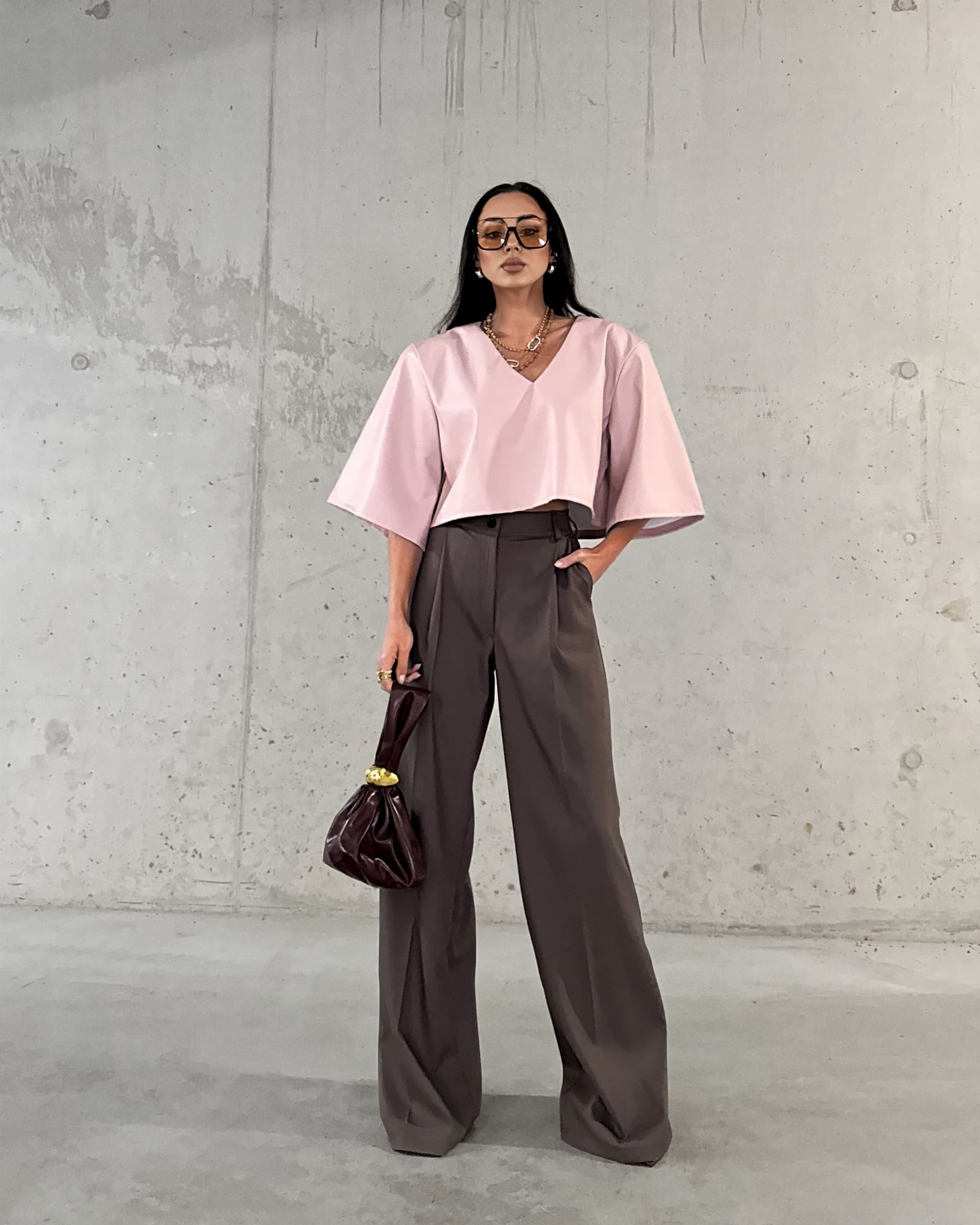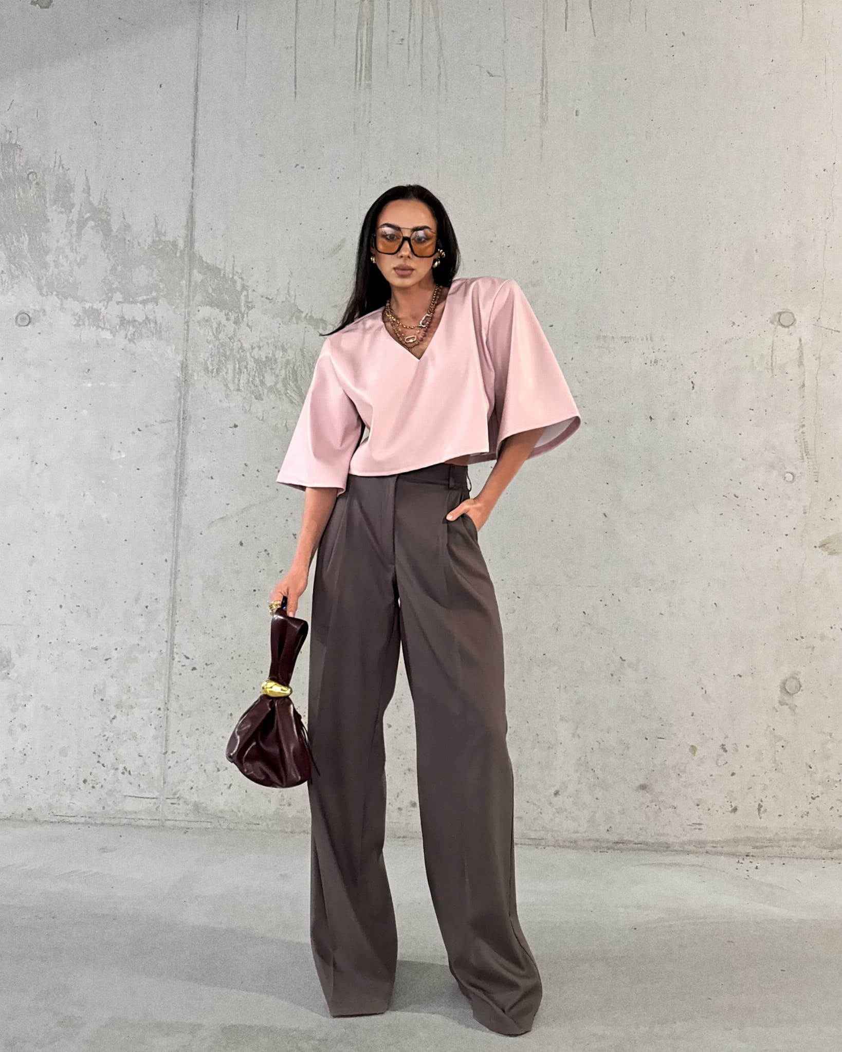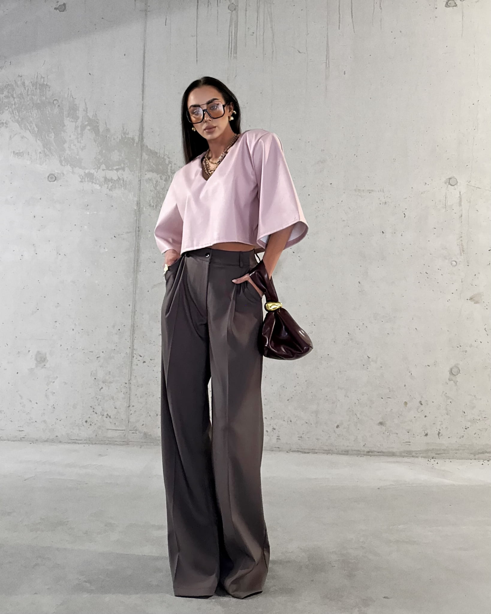 Spodnie La Milla w kolorze czekoladowym to elegancka propozycja dla Pań ceniących sobie styl i komfort. Klasyczny krój z szerokimi nogawkami to idealny wybór na formalne spotkania jak i codzienne wyjścia. Wysoki stan spodni i szerokie nogawki dodają eleganckiego uroku. Spodnie posiadają kieszenie i są zapinane na złoty guzik. Spodnie możesz połączyć z Tshirtami i obuwiem sportowym uzyskując miejski look lub koszulą i marynarką tworząc elegancki look.