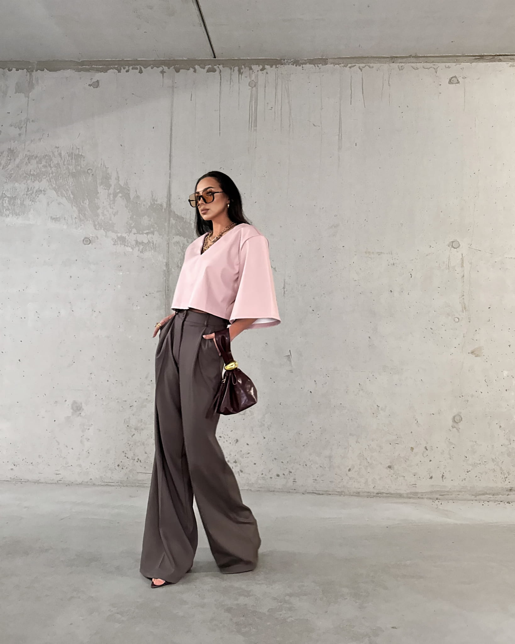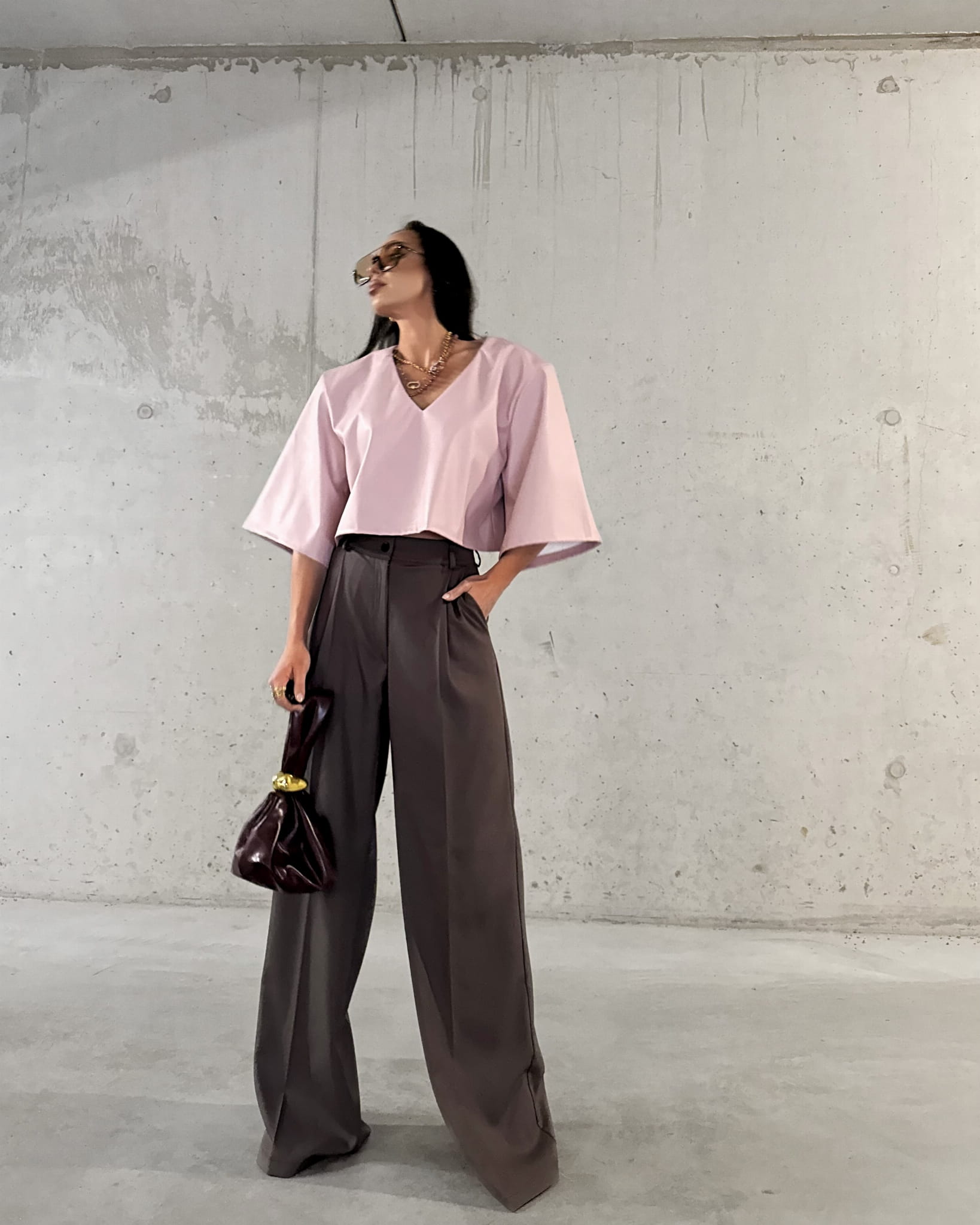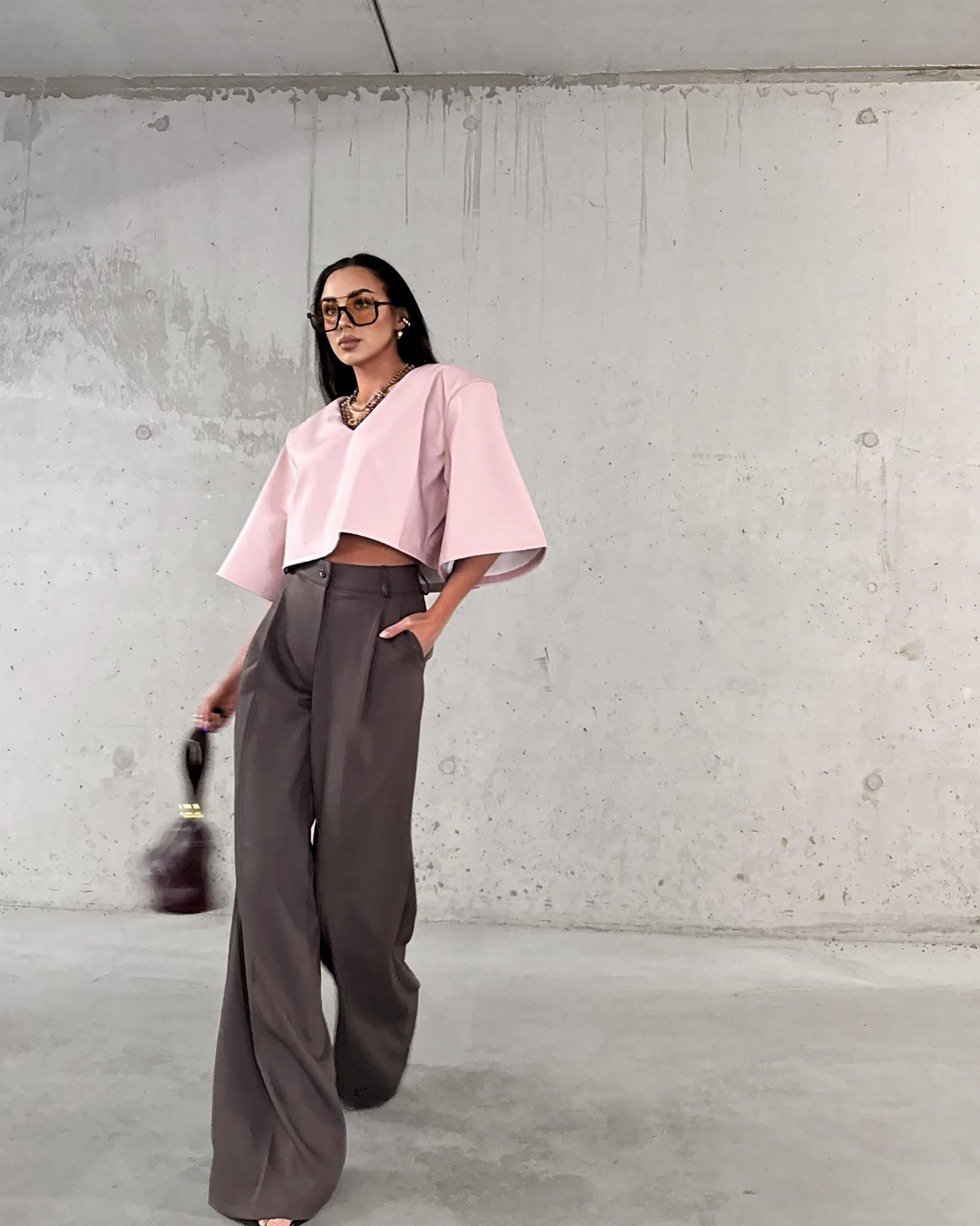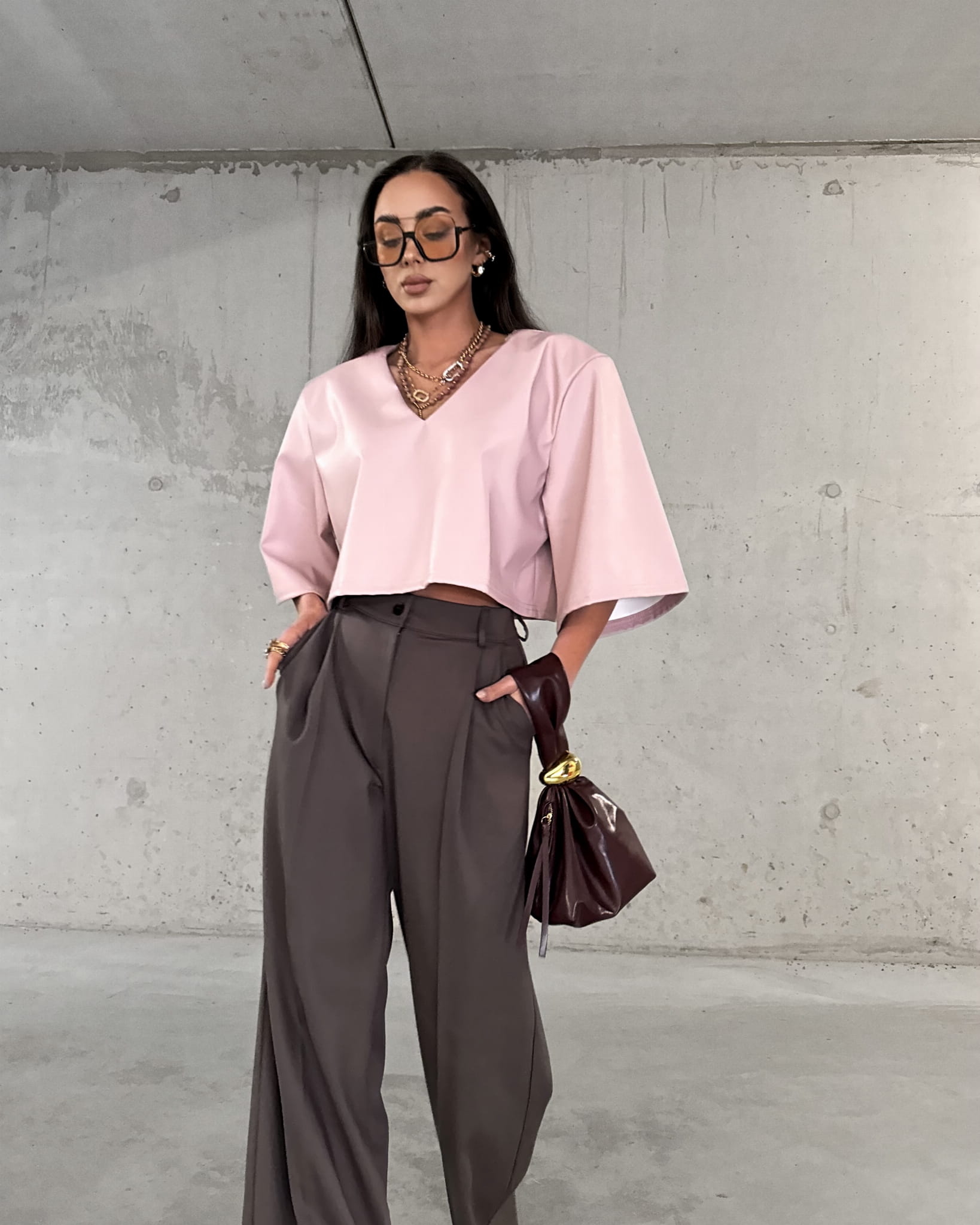 Spodnie La Milla w kolorze czekoladowym to elegancka propozycja dla Pań ceniących sobie styl i komfort. Klasyczny krój z szerokimi nogawkami to idealny wybór na formalne spotkania jak i codzienne wyjścia. Wysoki stan spodni i szerokie nogawki dodają eleganckiego uroku. Spodnie posiadają kieszenie i są zapinane na złoty guzik. Spodnie możesz połączyć z Tshirtami i obuwiem sportowym uzyskując miejski look lub koszulą i marynarką tworząc elegancki look.