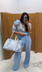 Duża torebka skórzana typu shopperni nebieska - skóra naturalna