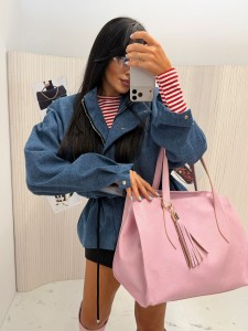 Duża torebka skórzana typu shopper różowa - skóra naturalna